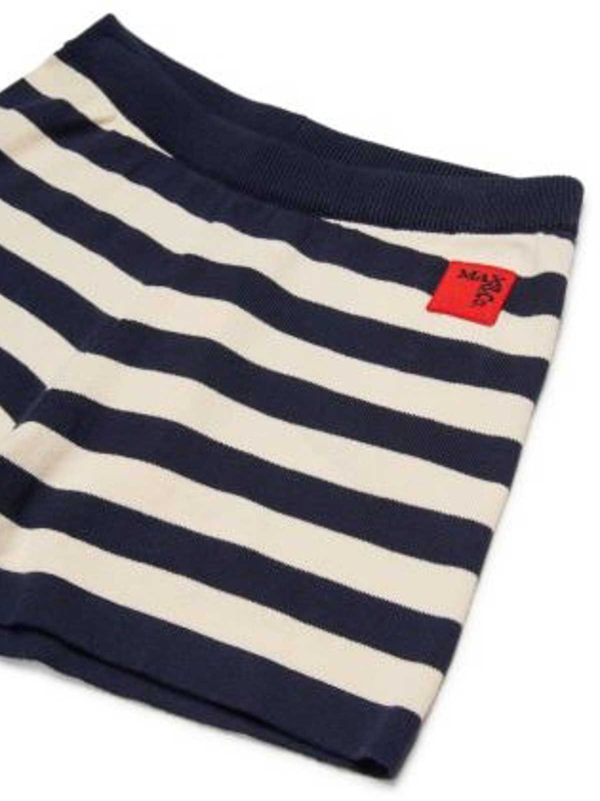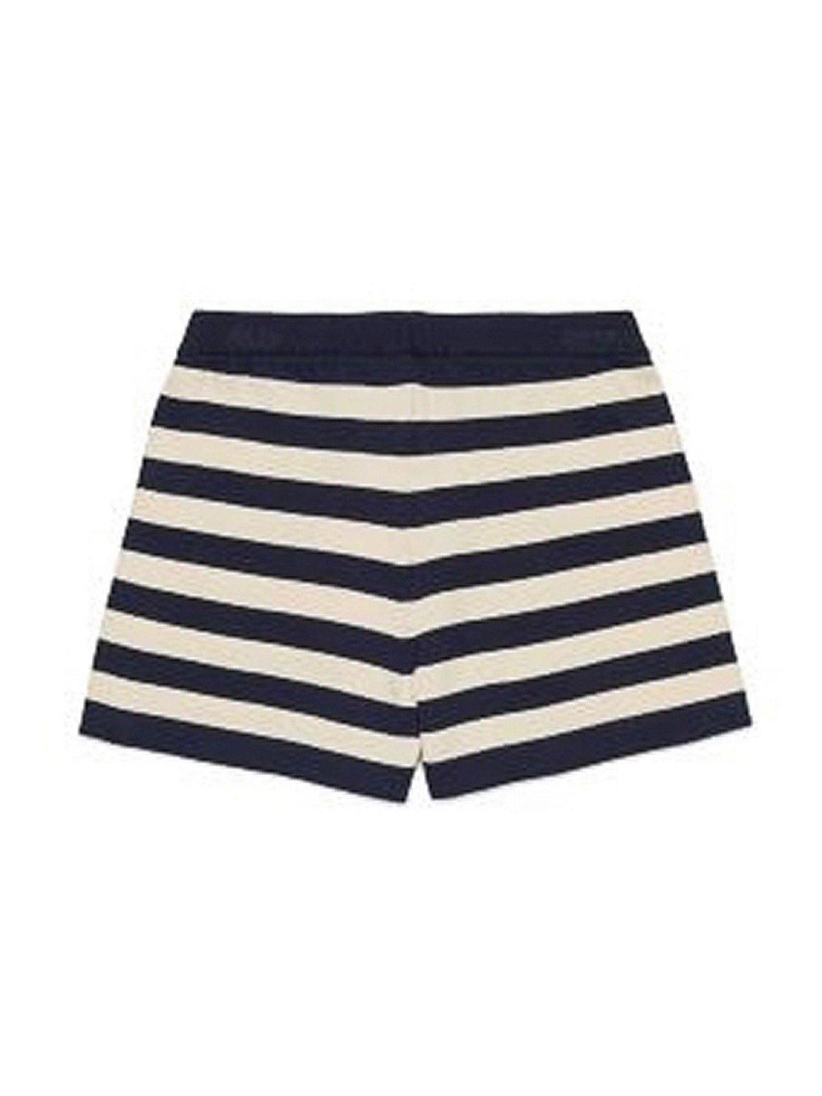 Logo à motif rayé bleu marine, détail du logo, taille élastiquée, tricoté