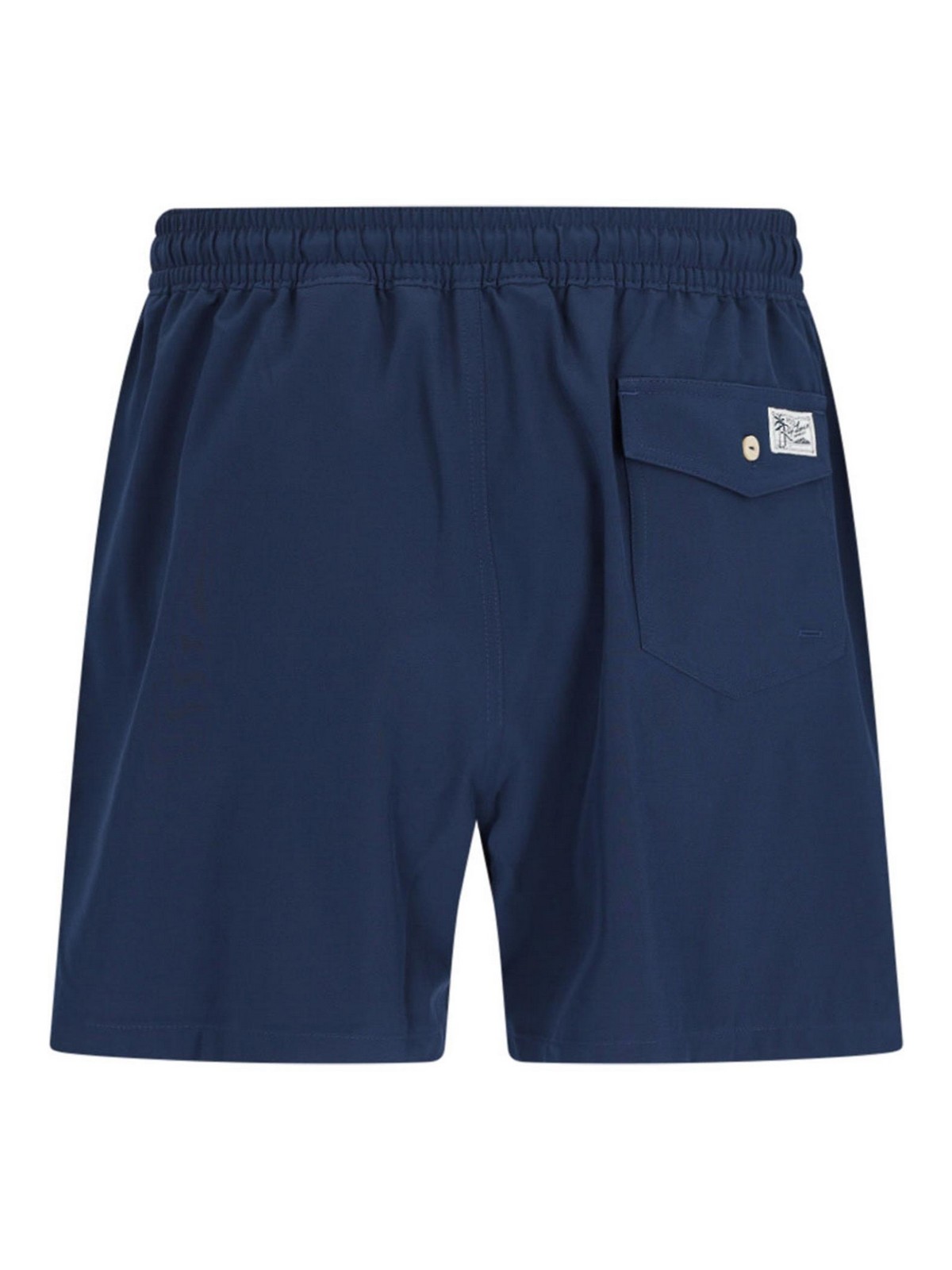 Short de costume Traveler Polo Ralph Lauren en bleu, tonalita'navy life élastiqué Life Life, deux poches latérales, logo latéral, une poche, bouton Patta, poulain, étiquette rétro, logo, logo droit