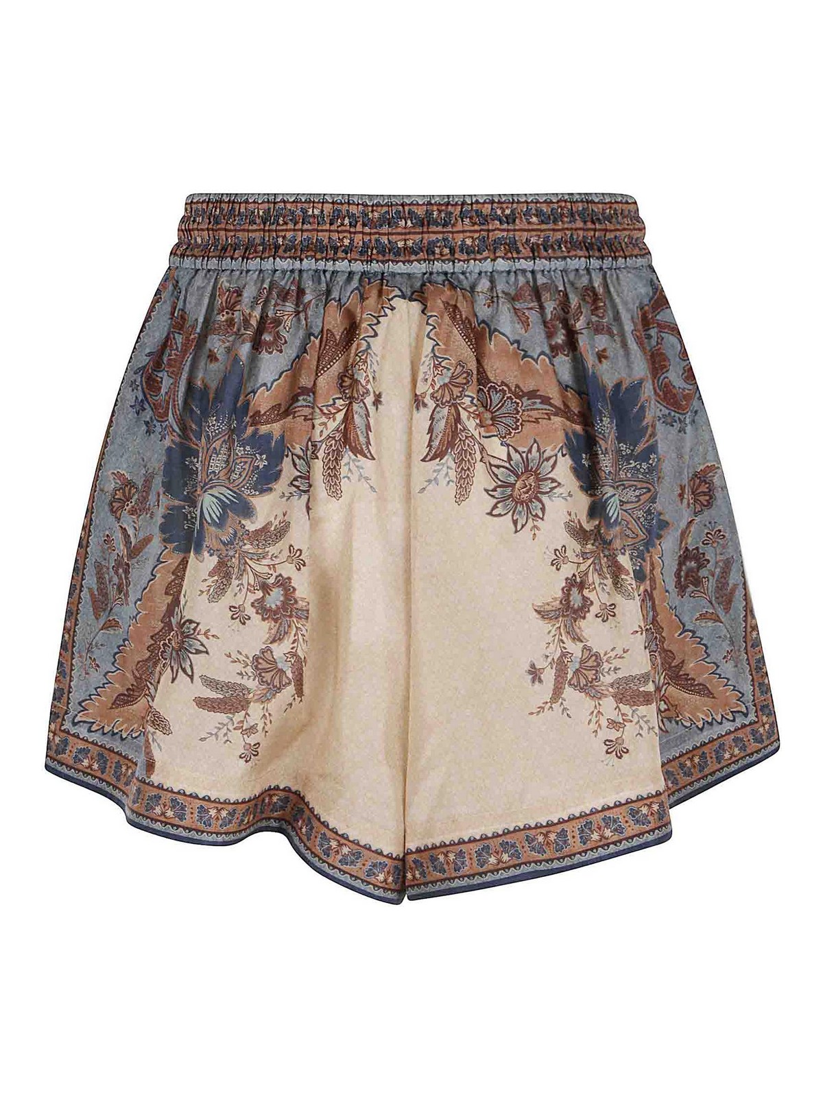 Short Sension avec imprimé floral en soie et soie indienne Zimmermann, élastique avec cordon de serrage