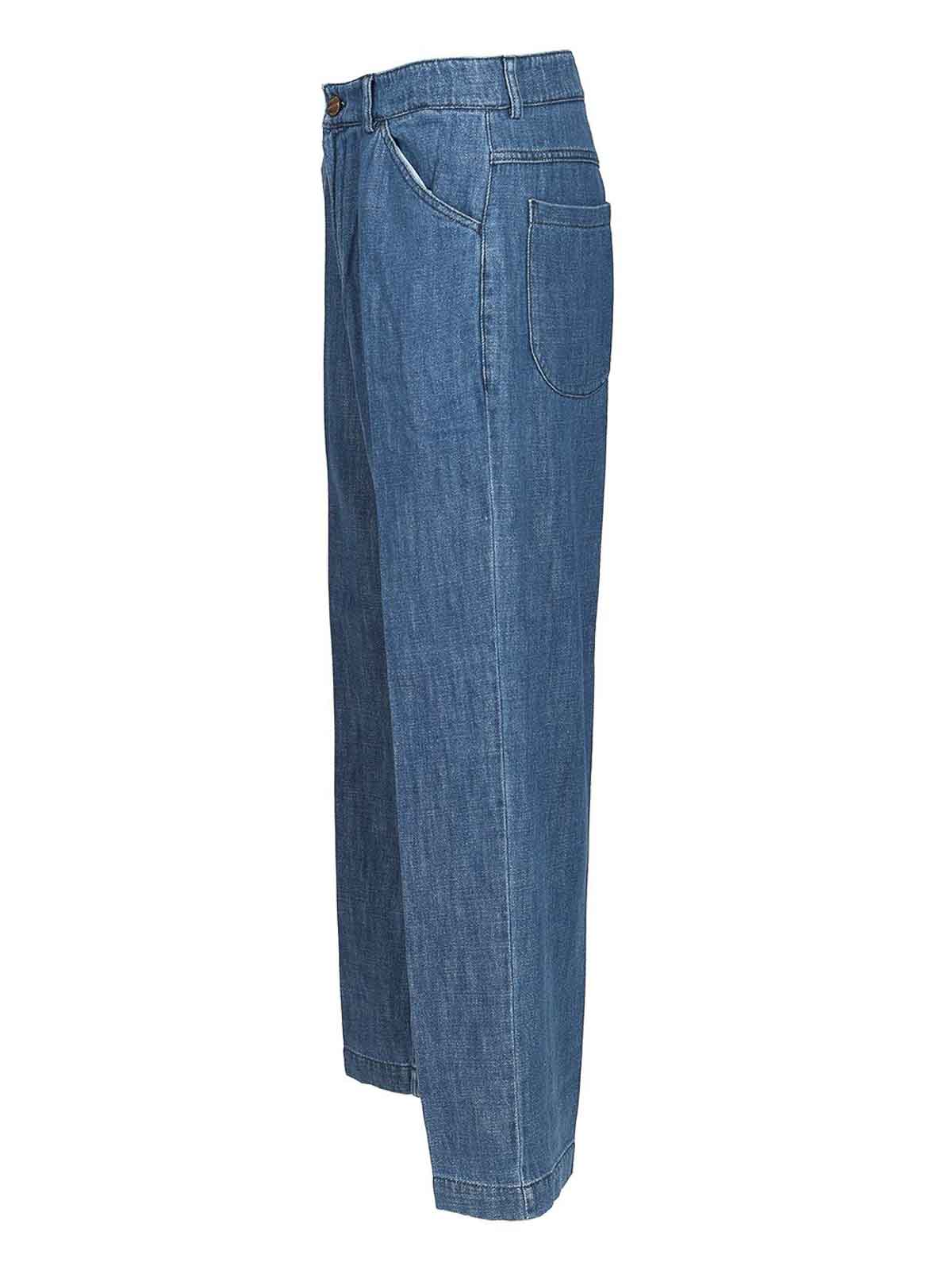 Pantalon en jean vintage original avec 5 poches, fermeture zippée et boutonnée dissimulées, passants de ceinture, poches passepoilées latérales et poches arrière plaquées