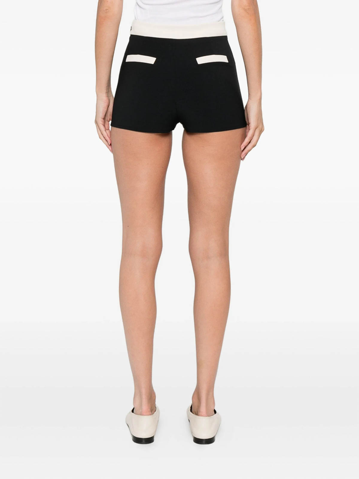 Empiècement blanc, noir cassé, boutons ton sur ton, taille haute, coupe ajustée, ourlet droit
