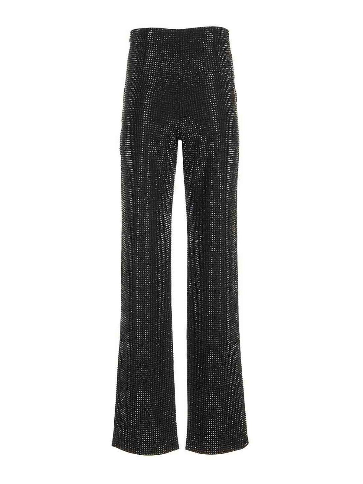 Pantalon slim à coupe botte Roland Mouret, en crêpe épais orné de microcristaux. Taille haute, fermeture éclair dissimulée sur le côté, poches fendues sur les côtés.
