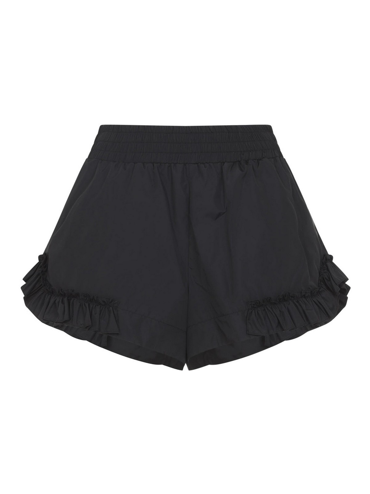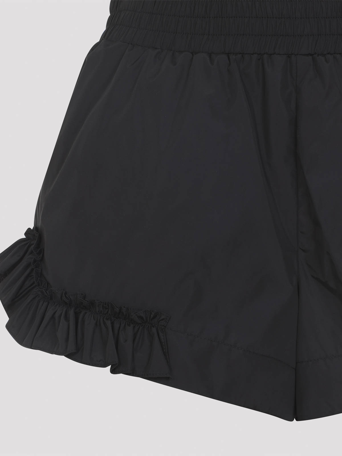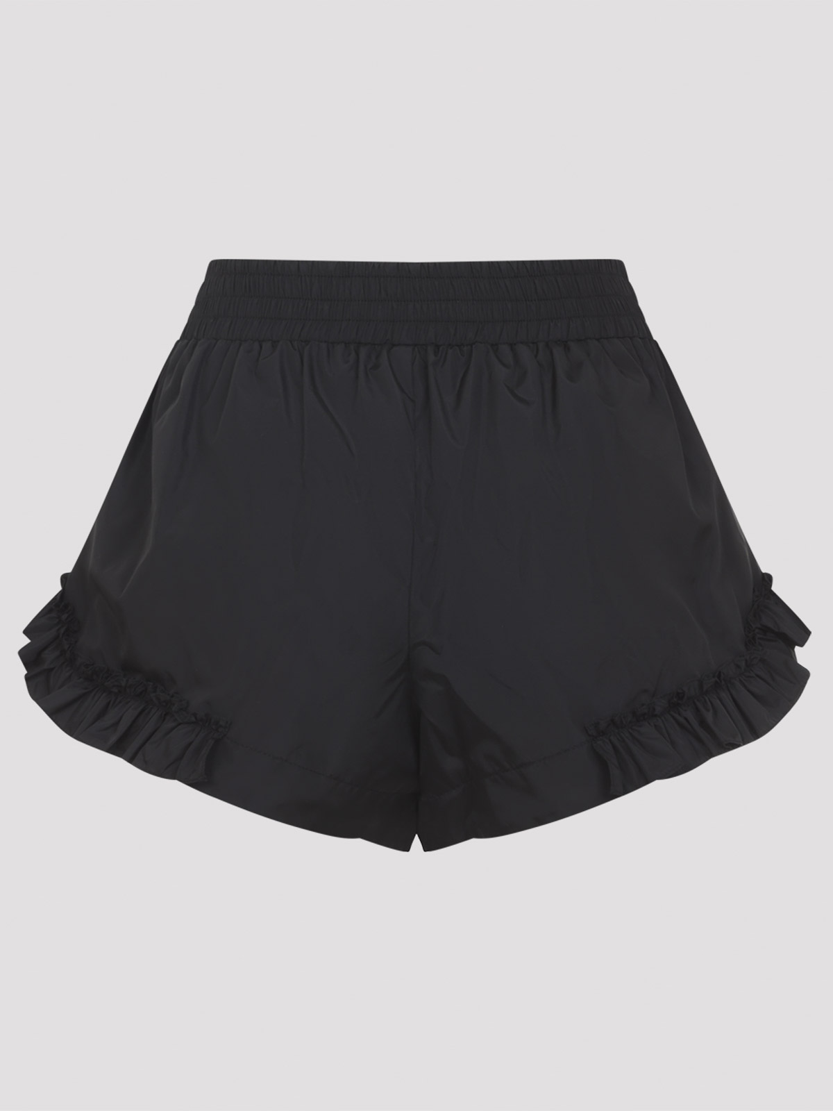Short en nylon noir à volants Simone Rocha. Confectionné en nylon noir, doté d'une ceinture élastique et de détails volantés sur les ourlets asymétriques.