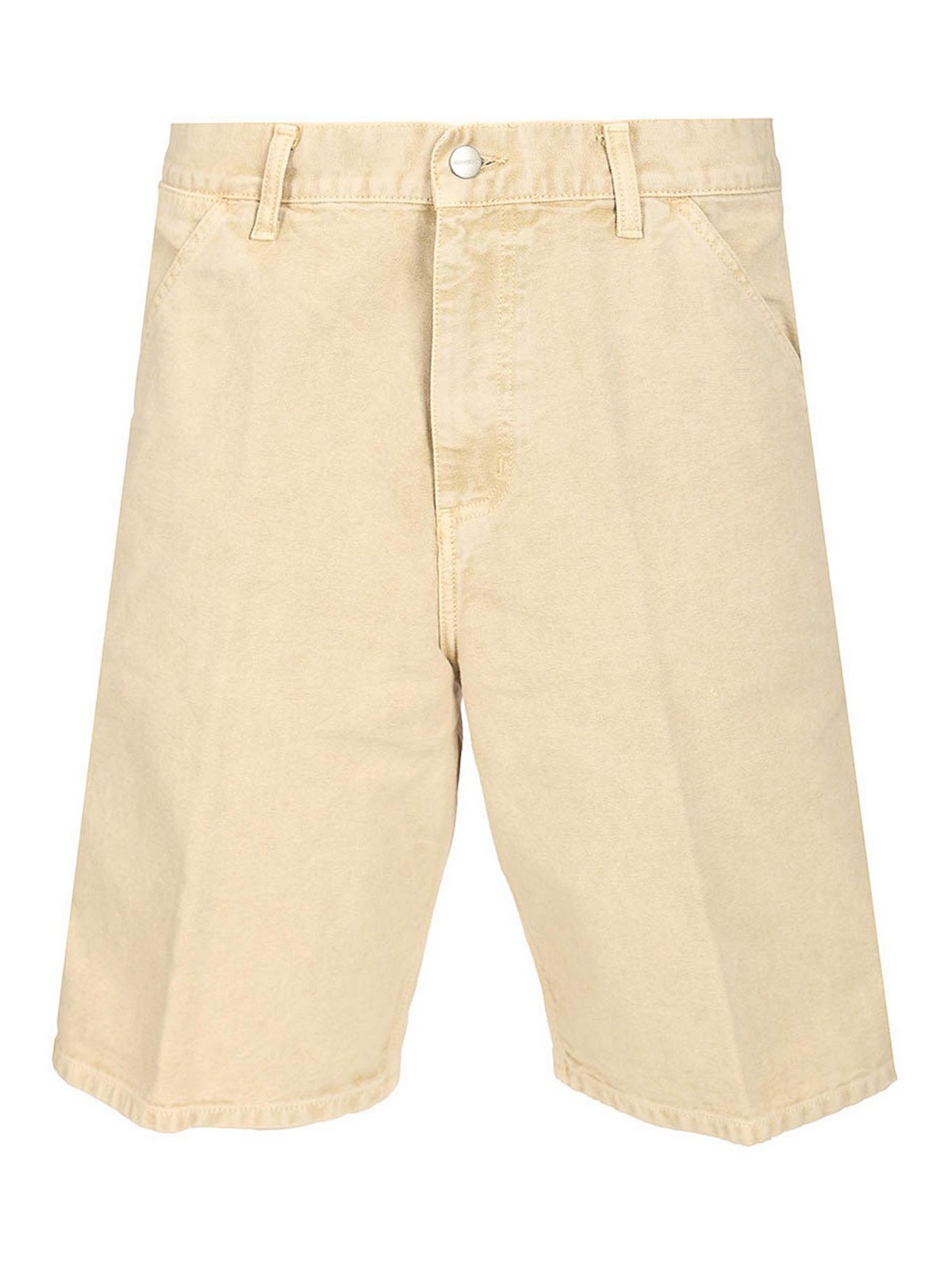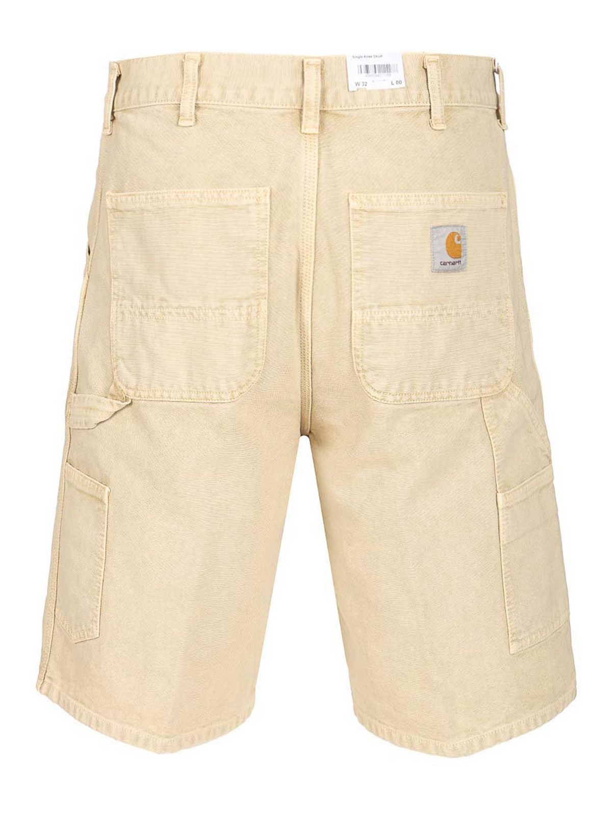 Short à genou simple Carhartt Wip Dearborn avec une jambe confortable, traité à la craie pour un effet délavé, avec une forte variation de couleur au niveau des poches à outils et une étiquette tissée carrée en forme de marteau au dos