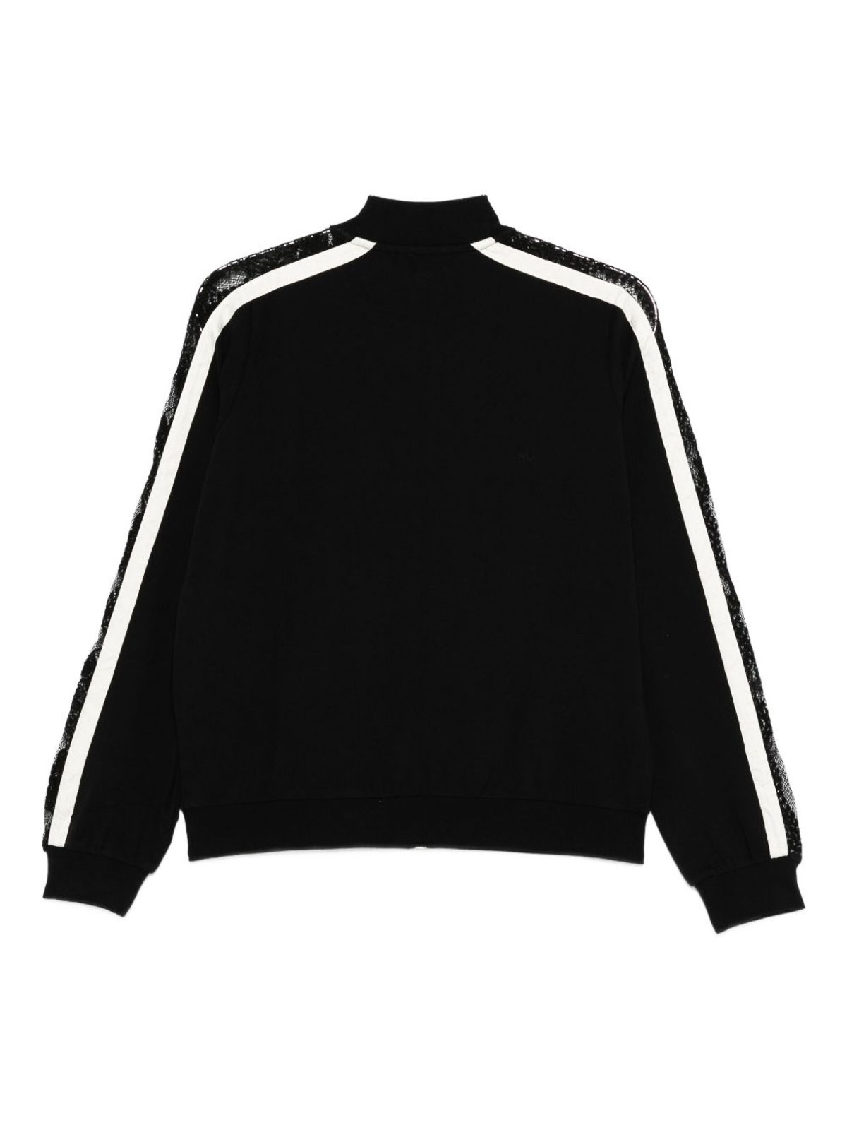 Fermeture éclair en dentelle noire, manches longues, rayures blanches