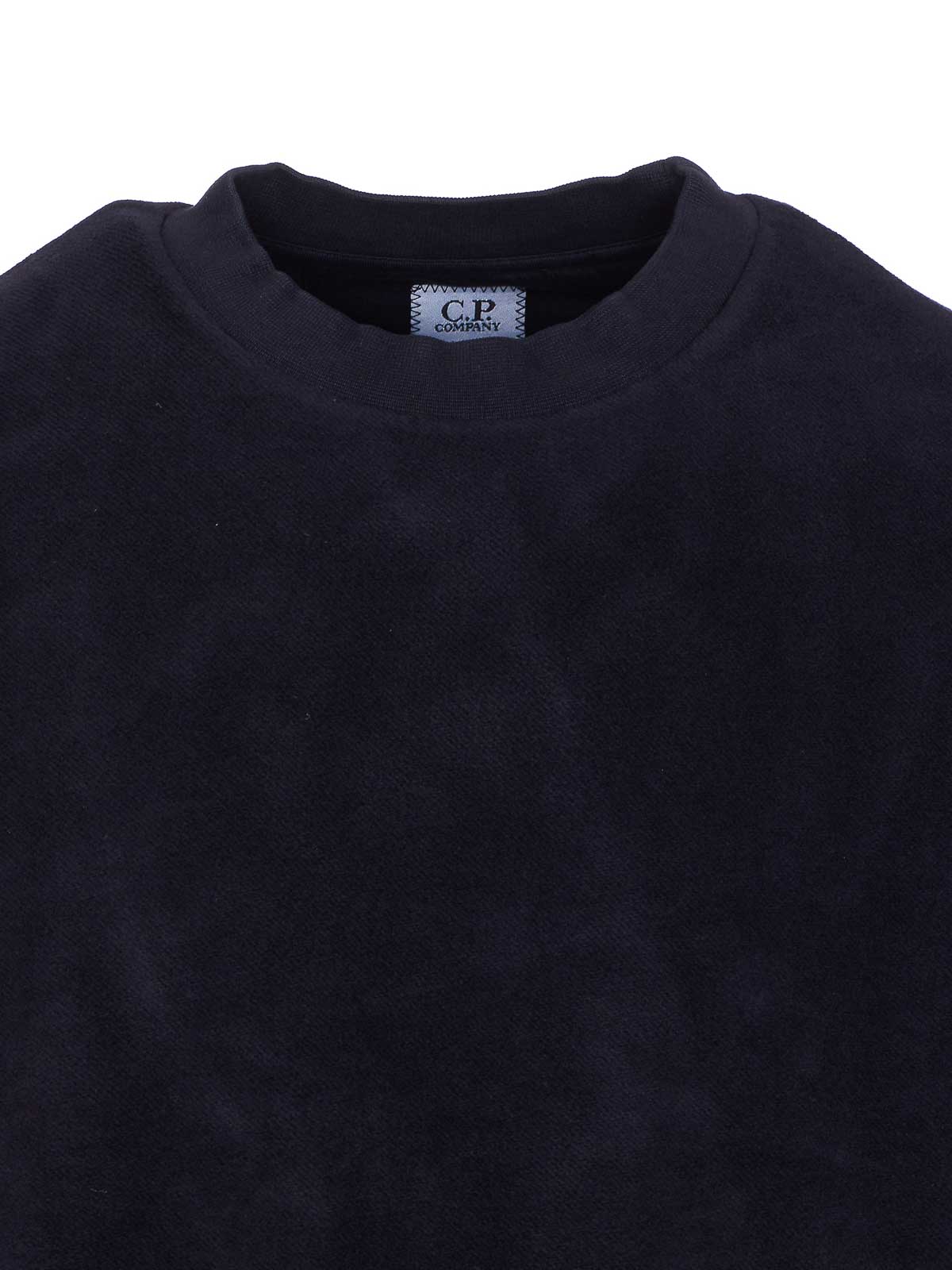 Sweat-shirt à col rond avec logo bleu de la société C P et écusson latéral