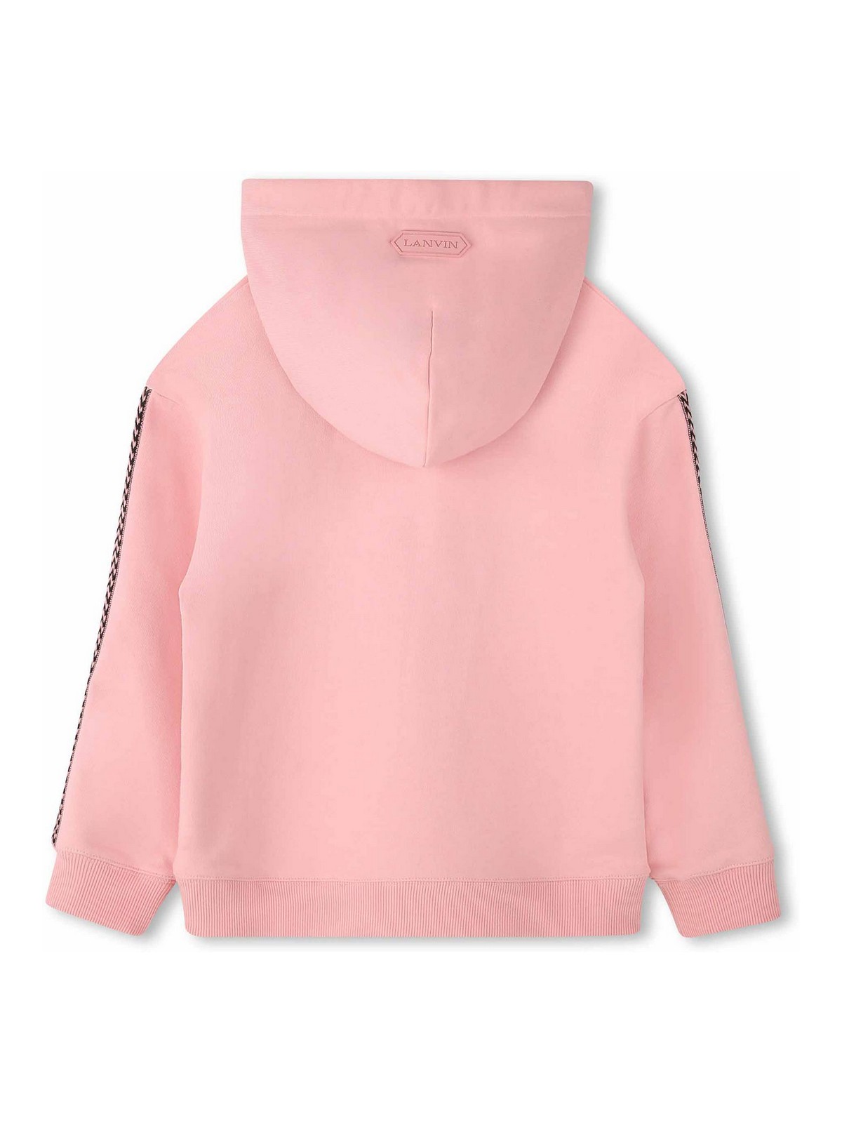 Sweat-shirt avec logo rose écrit avec logo, poche kangourou sur le devant, design à capuche à rayures biologiques %
