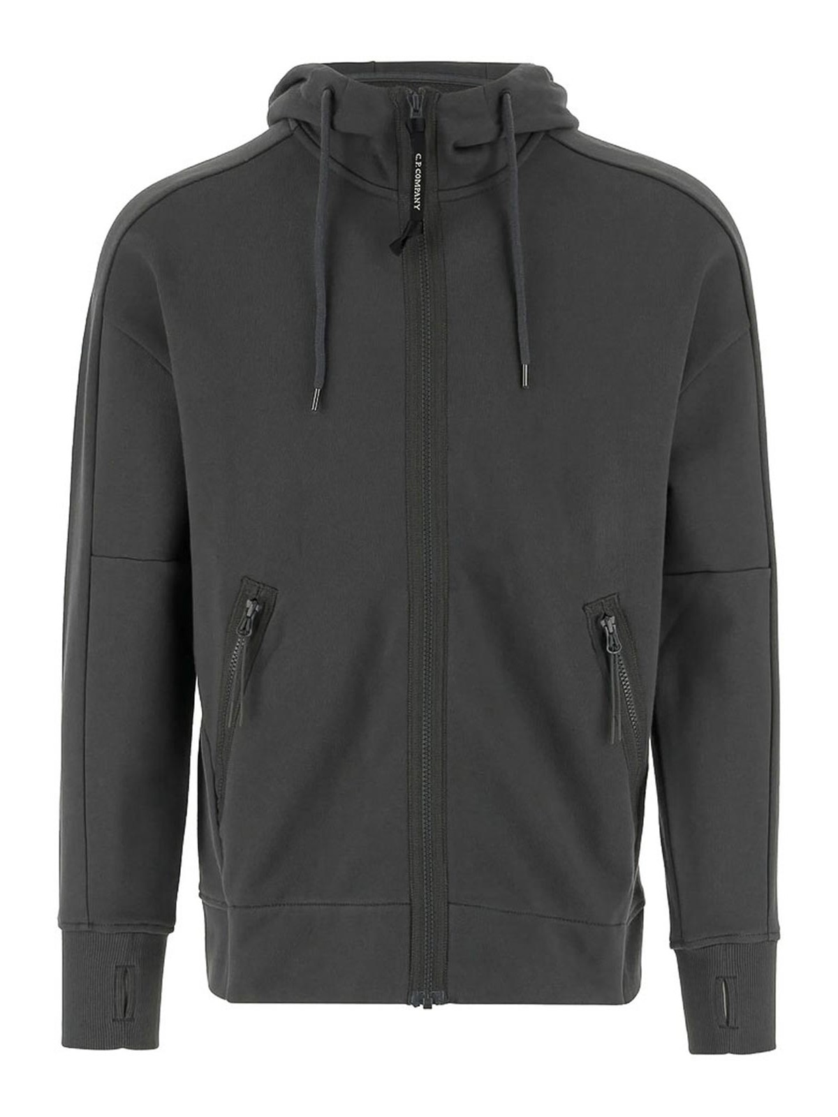 Capuche à cordon Dark Shadow, fermeture éclair complète, manches longues, deux poches zippées, lunettes C P Company suggère de retirer tous les accessoires amovibles avant le lavage.