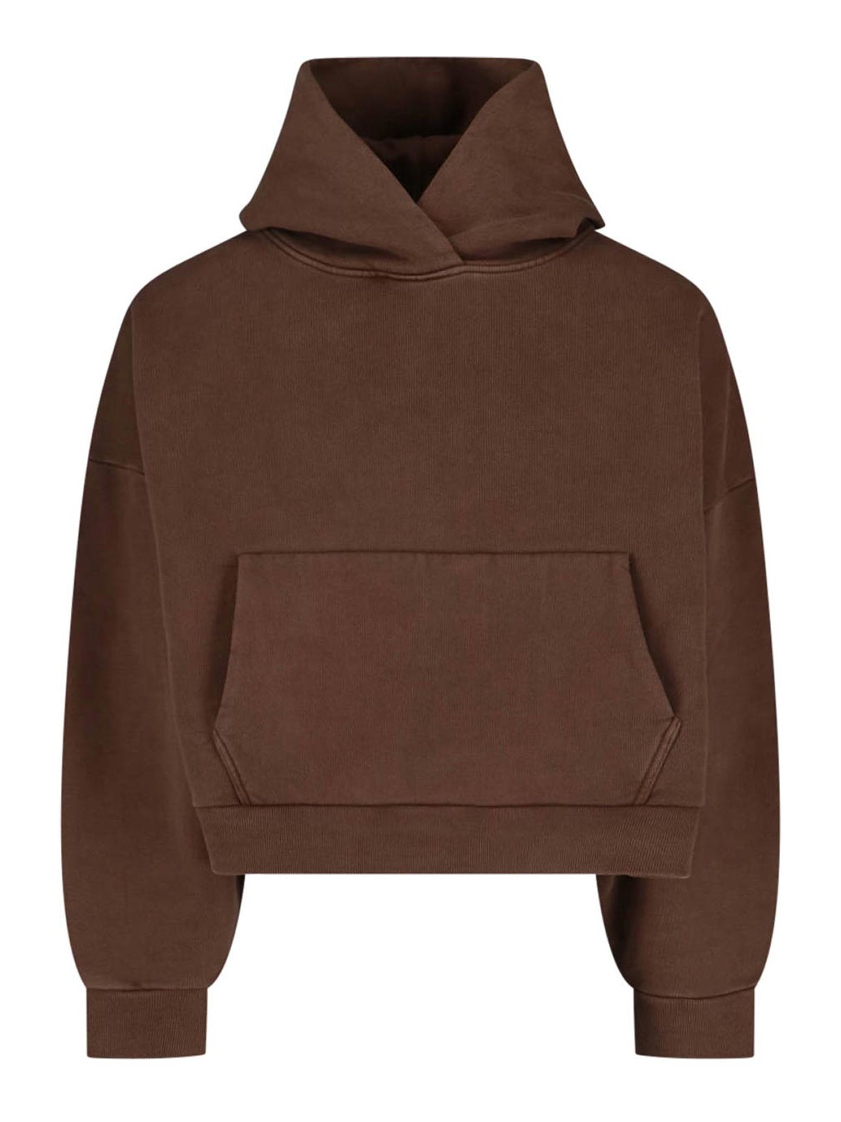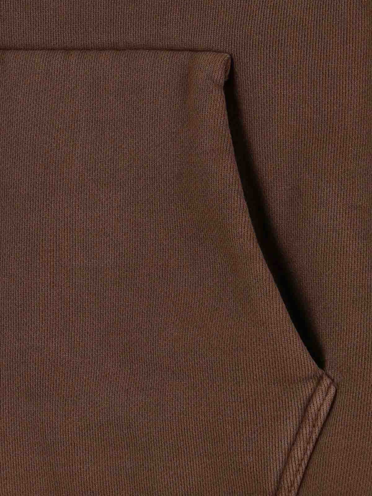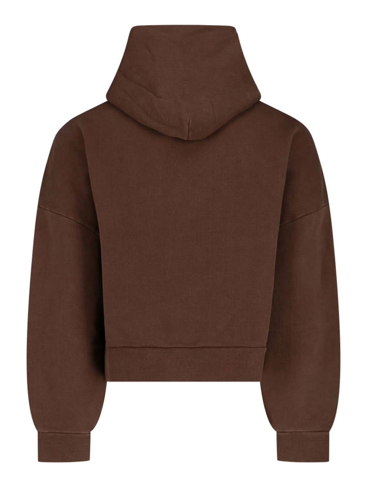Sweat-shirt à capuche Classic Entire Studios, en coton biologique marron, une grande poche avant, des finitions côtelées, un ourlet droit.