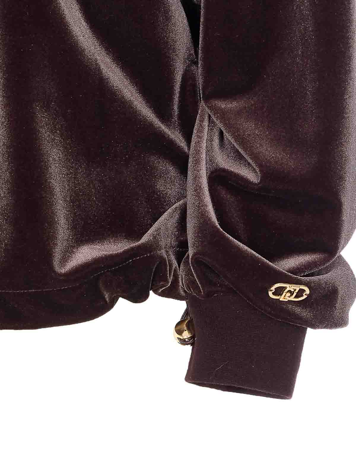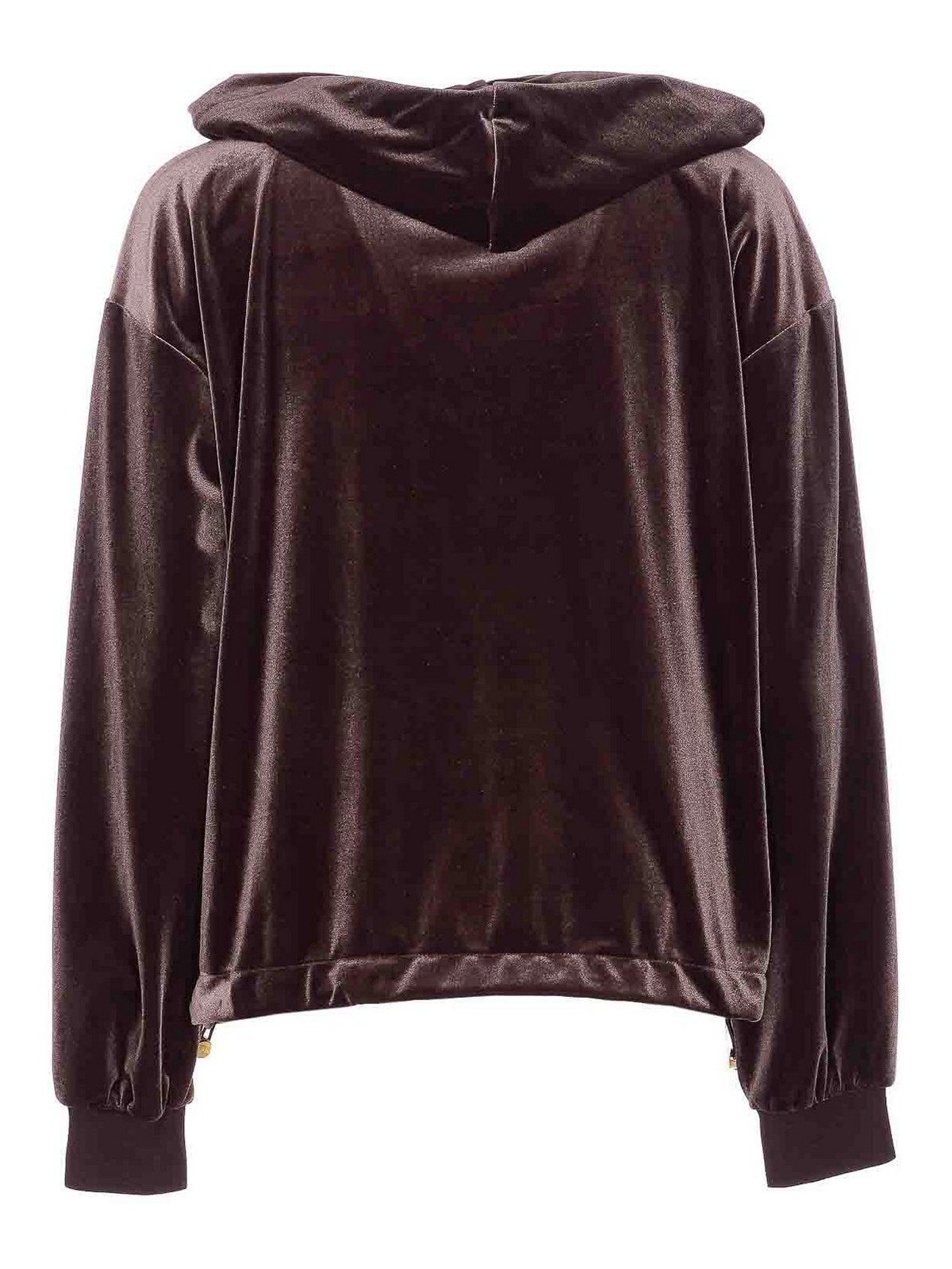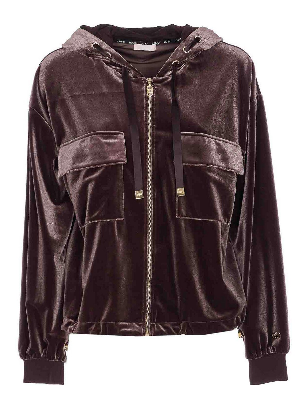 Sweat-shirt zippé marron Liu Jo avec capuche en coulisse, manches longues, effet poches,