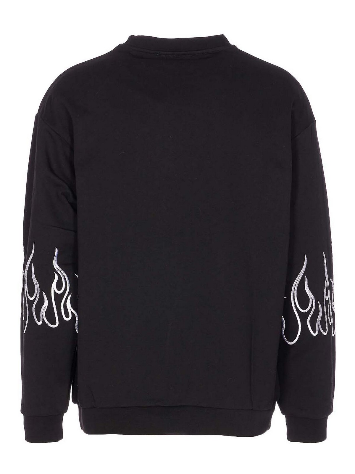 Sweat-shirt Vision of Super Black, col rond, logo brodé sur le col, flammes brodées sur les manches, logo du créateur,