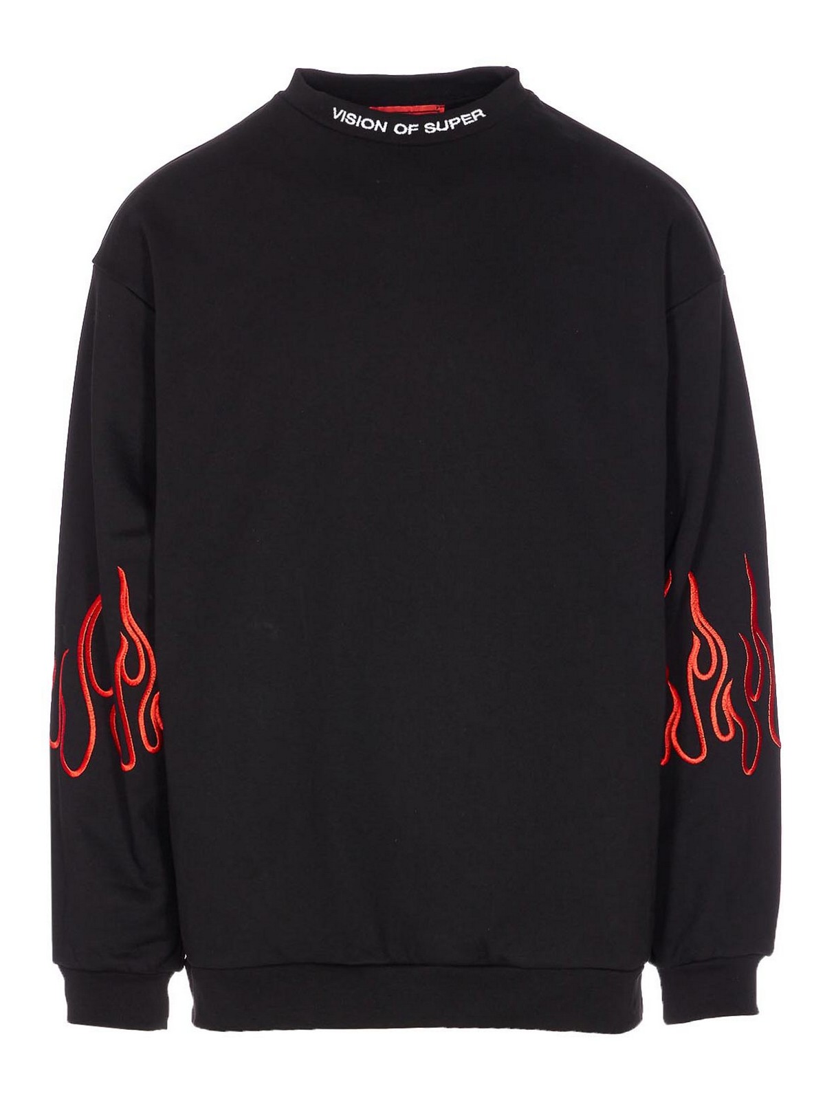 Sweat-shirt Vision of Super Black, col rond, logo brodé sur le col, flammes brodées sur les manches, logo du créateur,
