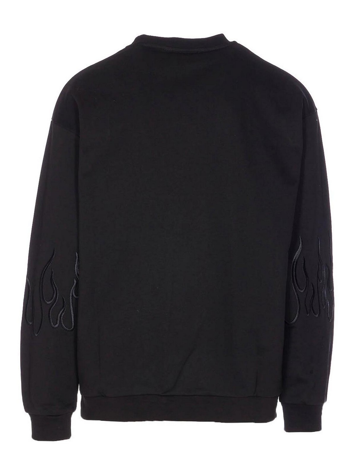 Sweat-shirt Vision of Super Black, col rond, logo brodé sur le col, flammes brodées sur les manches, logo du créateur,
