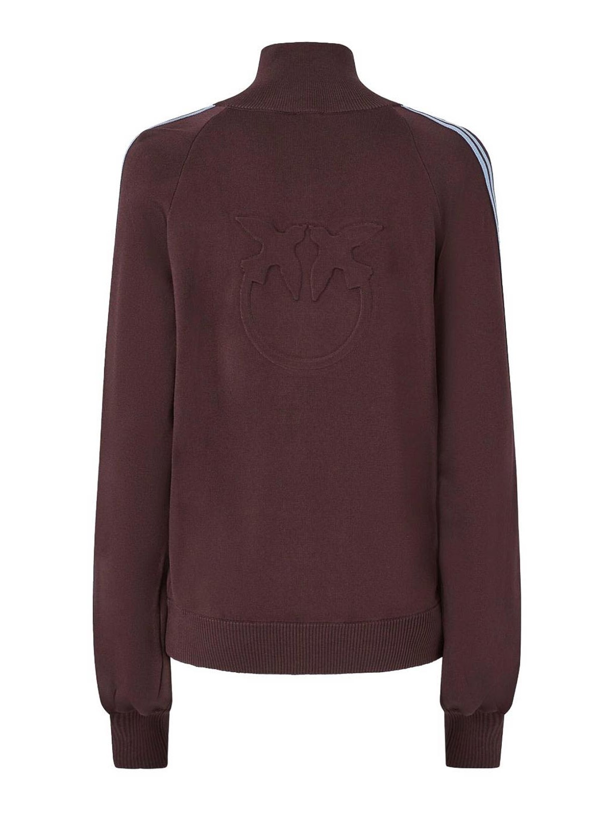 Le sweat-shirt zippé « Panarea » bordeaux de Pinko présente des bandes latérales contrastantes le long des manches