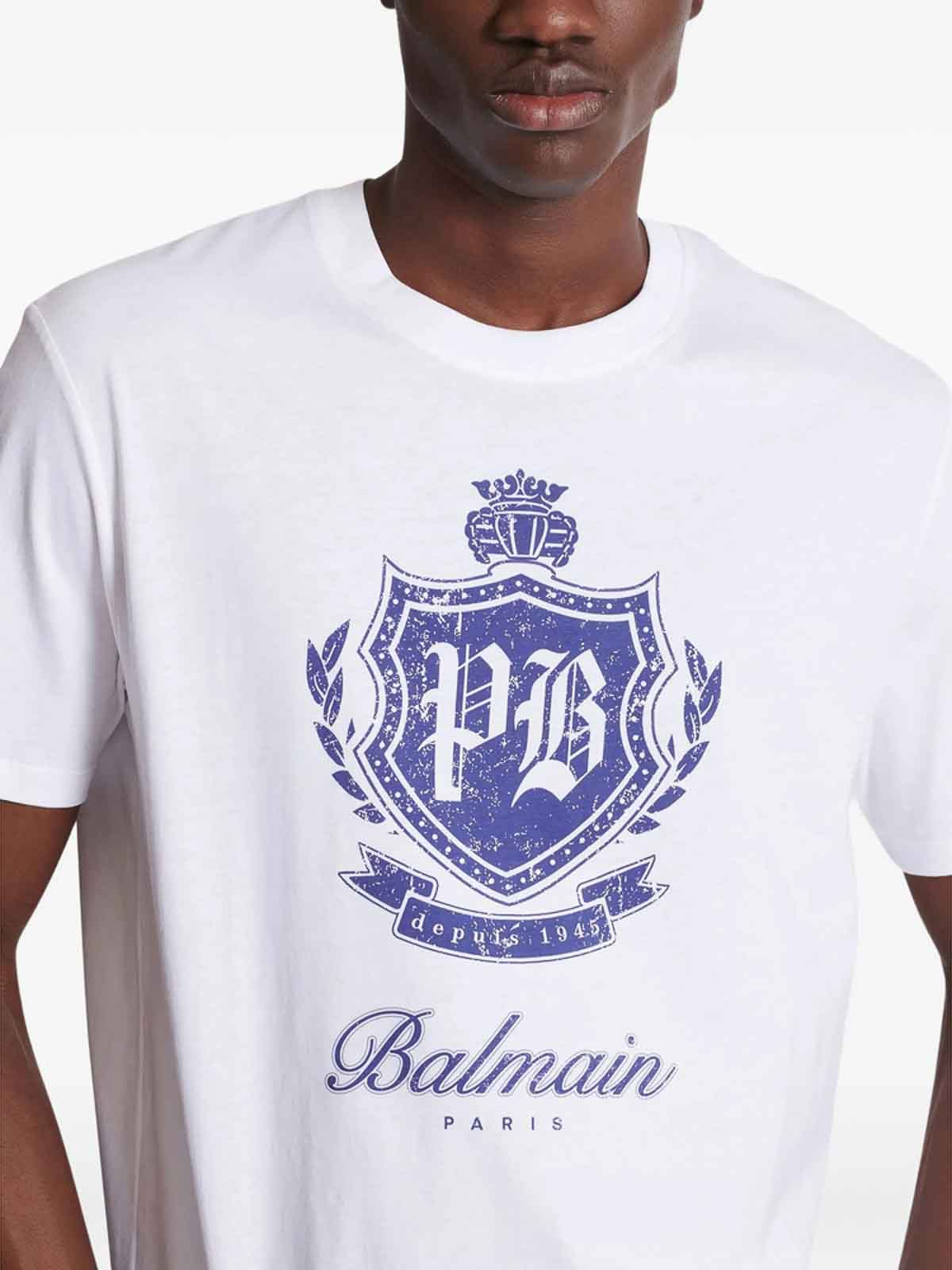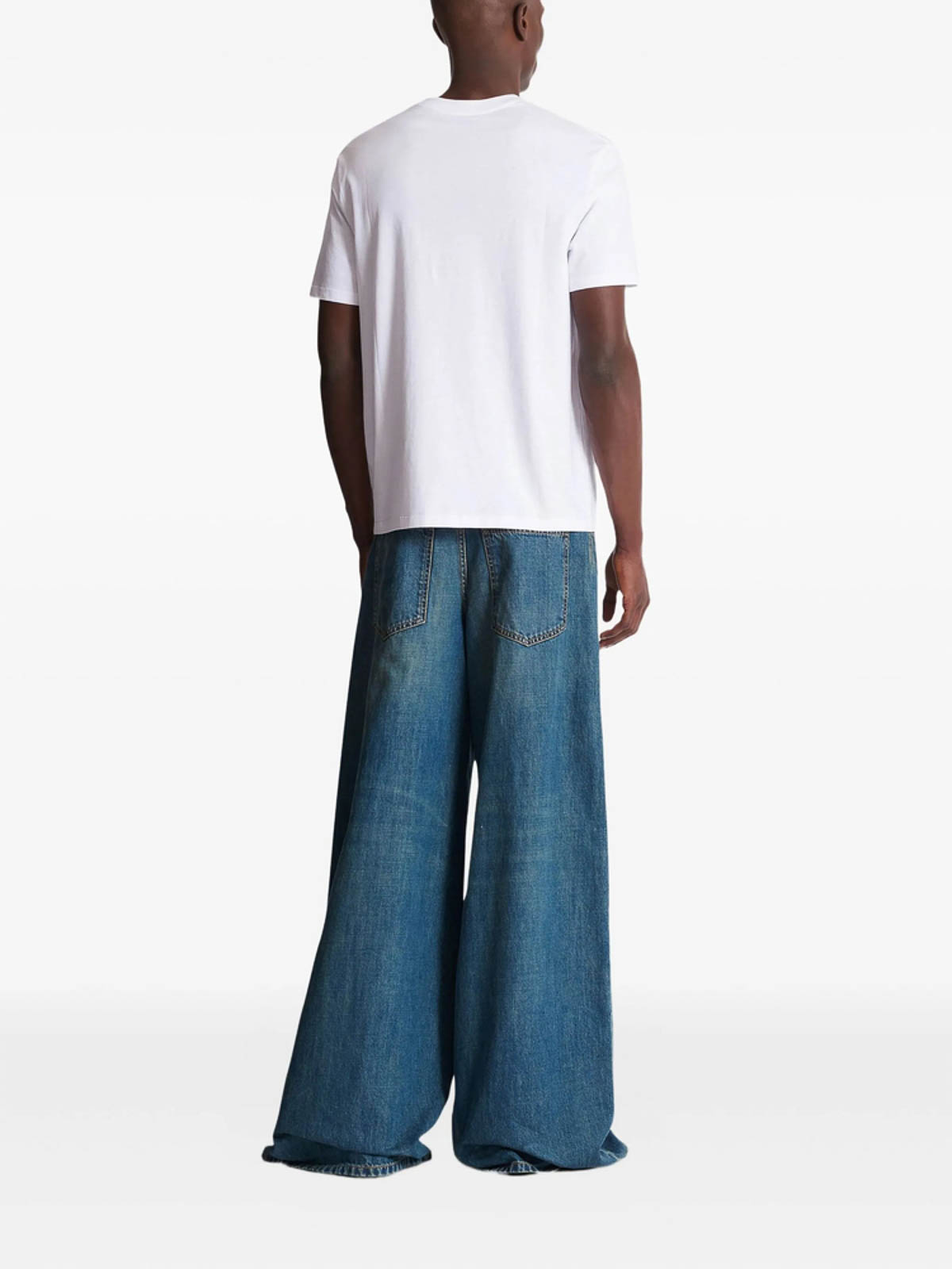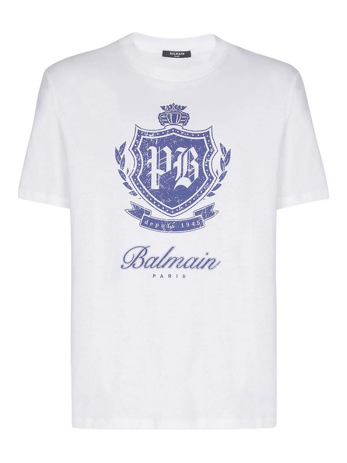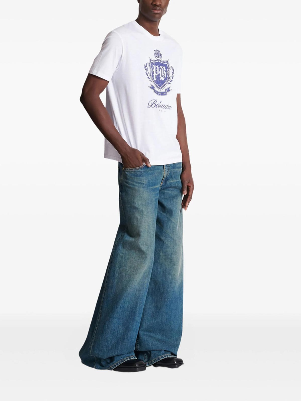 Manches courtes blanches, col rond, imprimé graphique sur la poitrine, ourlet droit