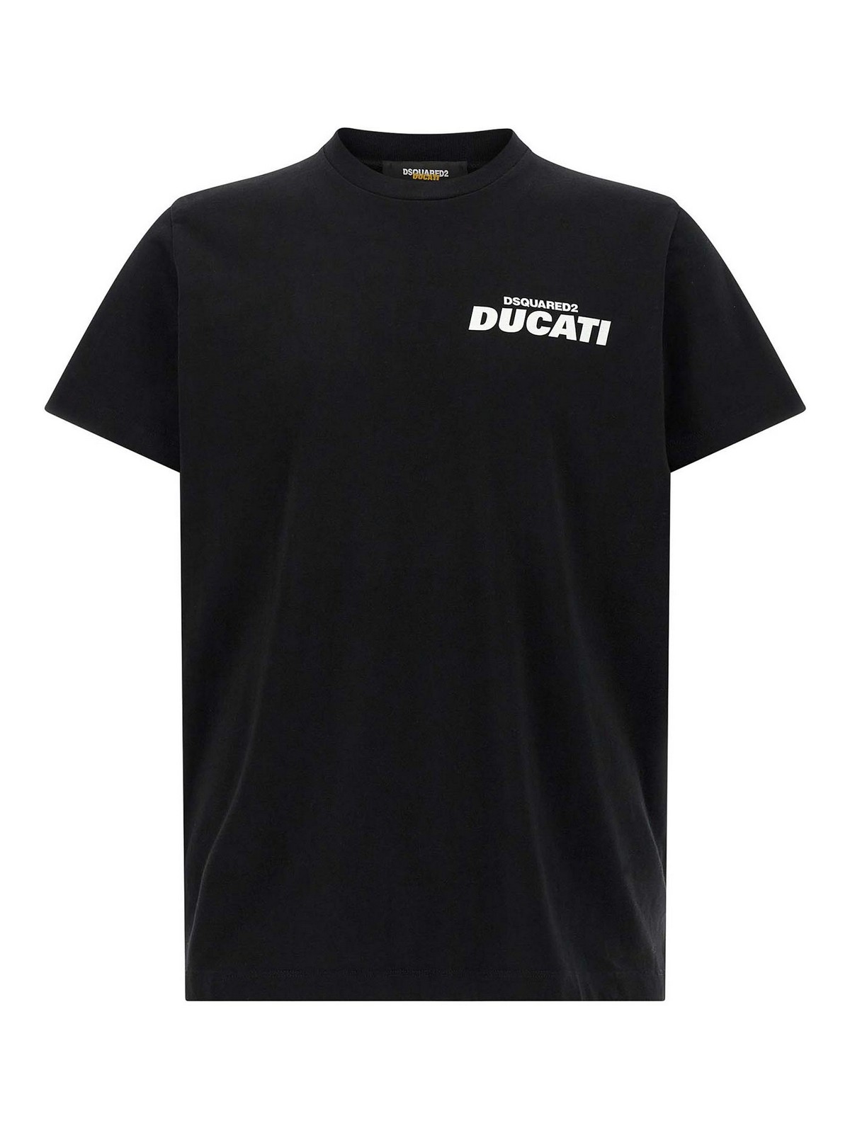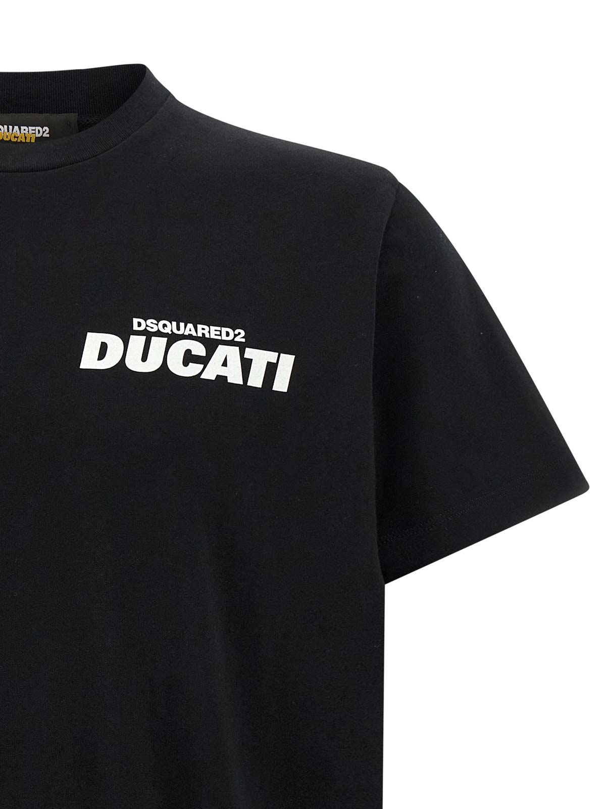 T-shirt capsule Dsquared2 x Ducati en jersey de coton avec imprimé sur le devant, col rond, manches courtes, fentes latérales.