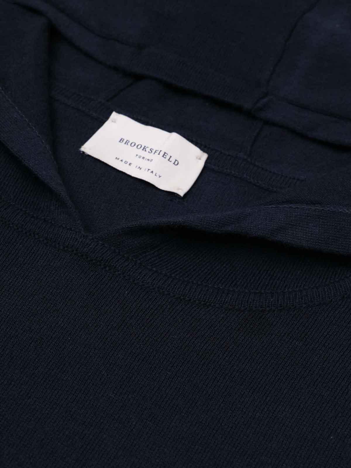 Jersey à capuche, coupe classique, col, poignets et jerk côtelé, manches longues, logo avec la dame. Couleur unie, instructions de lavage : lavage à la main, ne pas utiliser de javel, ne pas utiliser le sèche-linge, disposer horizontalement pour sécher, repasser à 110 degrés maximum, utilisable avec n'importe quel solvant à l'exception du tétrachlorilène.