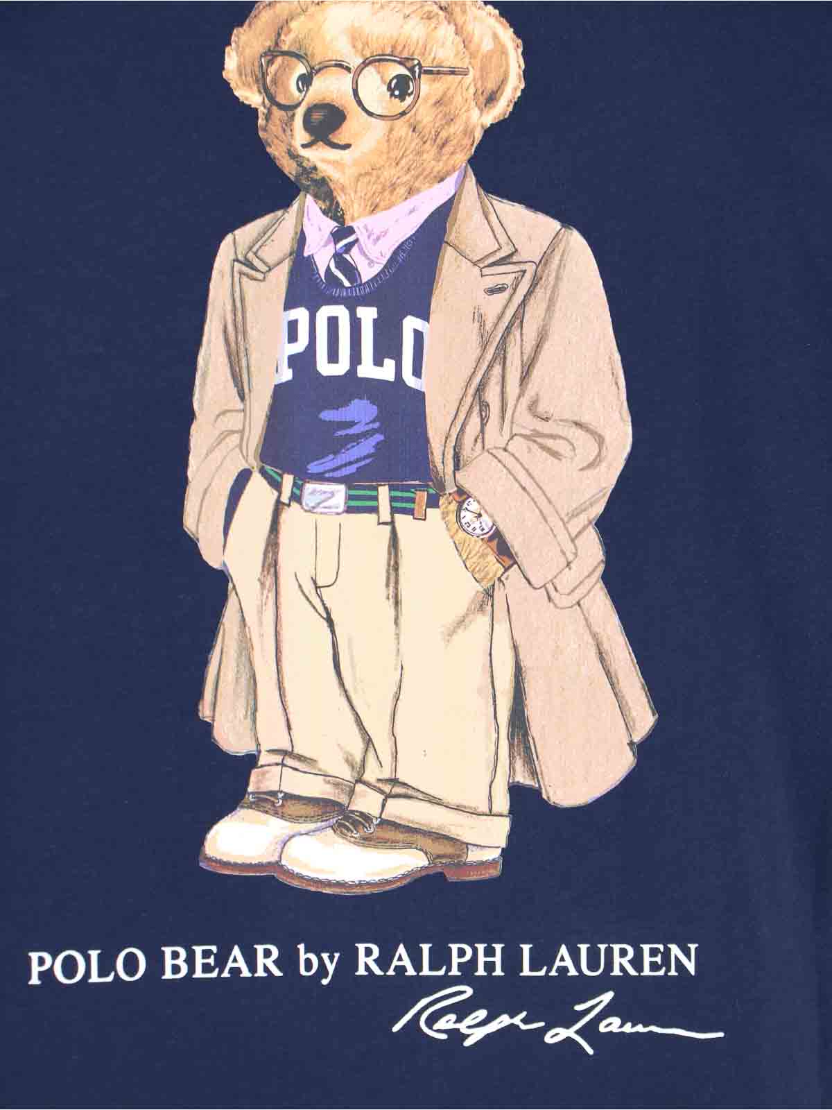 T-shirt Polo Bear Polo Ralph Lauren Blu Tonalita'Navy Girocollo Maniche Corte Taschino Petto Stampa Logo Bianca Maxi Stampa Logo Multicolore Rétro Orlo Dritto