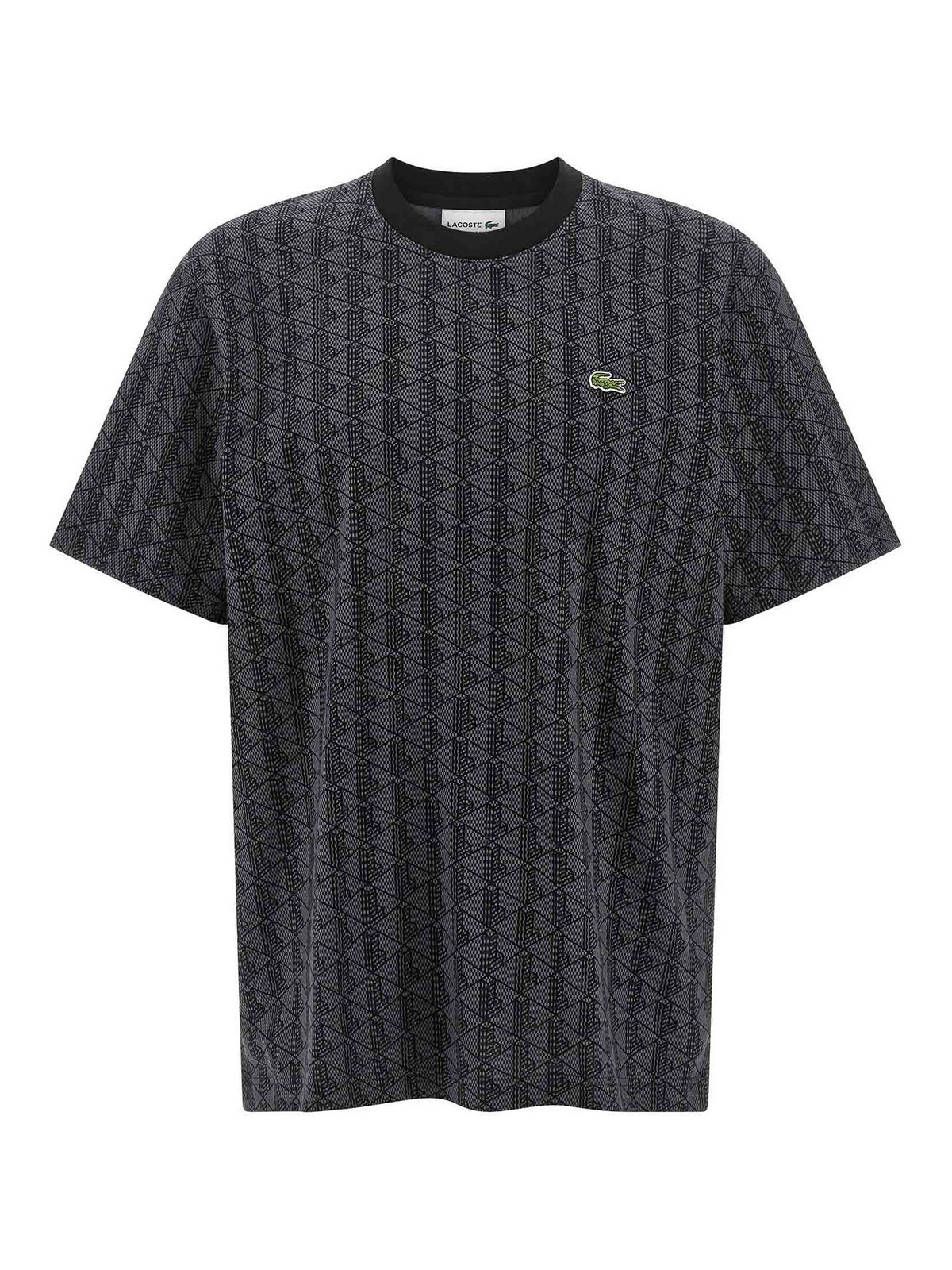 T-shirt en jersey de coton à motif monogrammé sur l'ensemble, écusson logo sur le devant, col rond, manches courtes