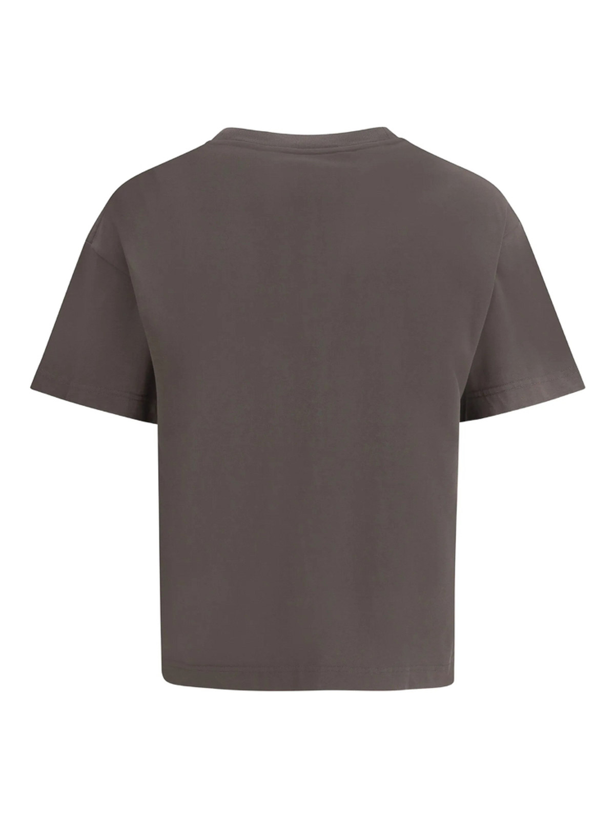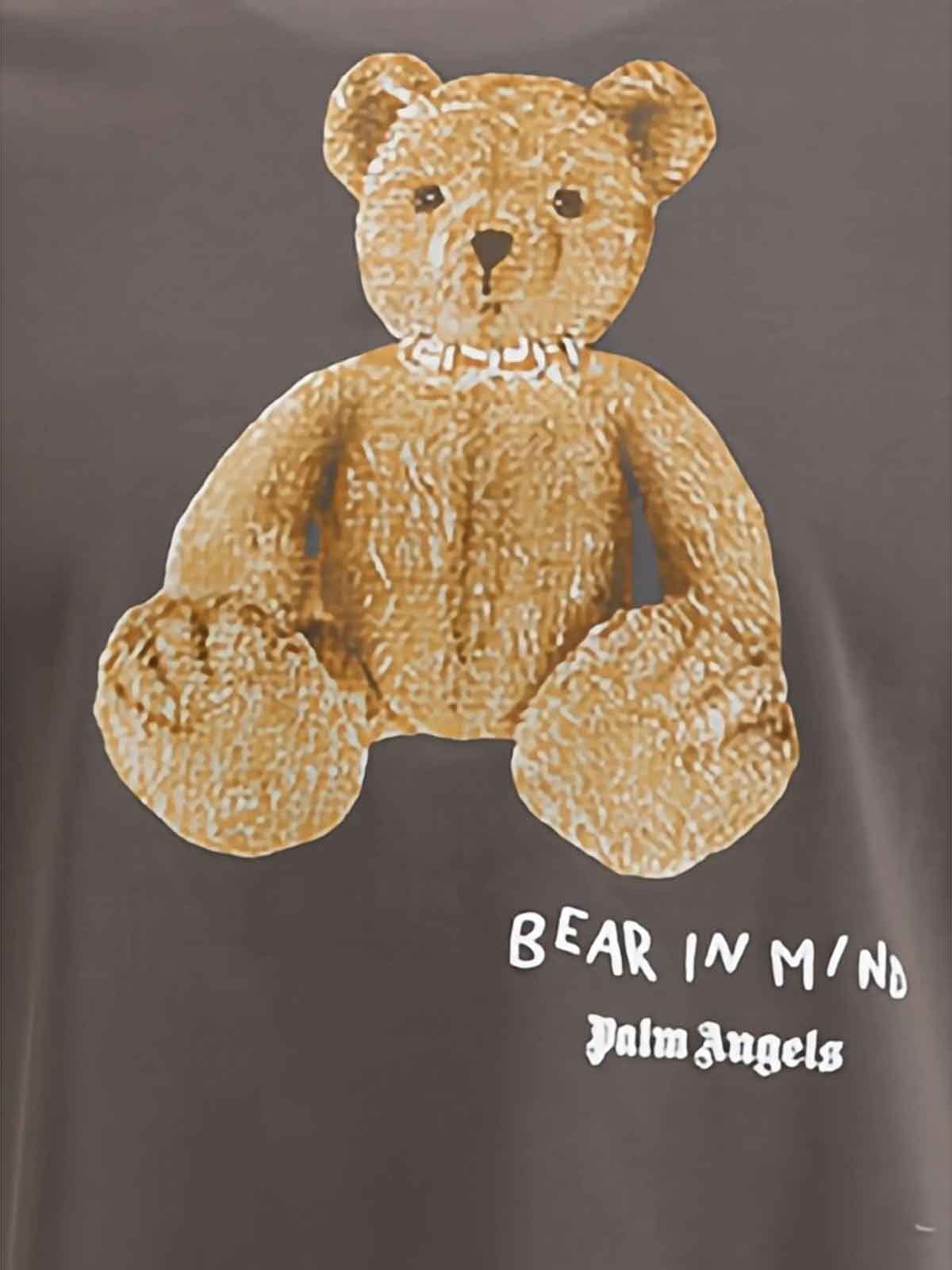 Col rond à manches courtes et imprimé ours en peluche gris foncé