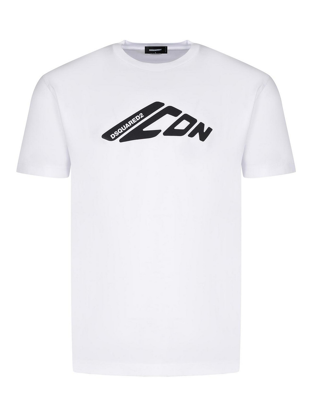 T-shirt Dsquared2 en coton blanc. col rond côtelé. manches courtes. Écriture d'icônes et lettrage du logo sur la poitrine en contraste. 100 % coton.