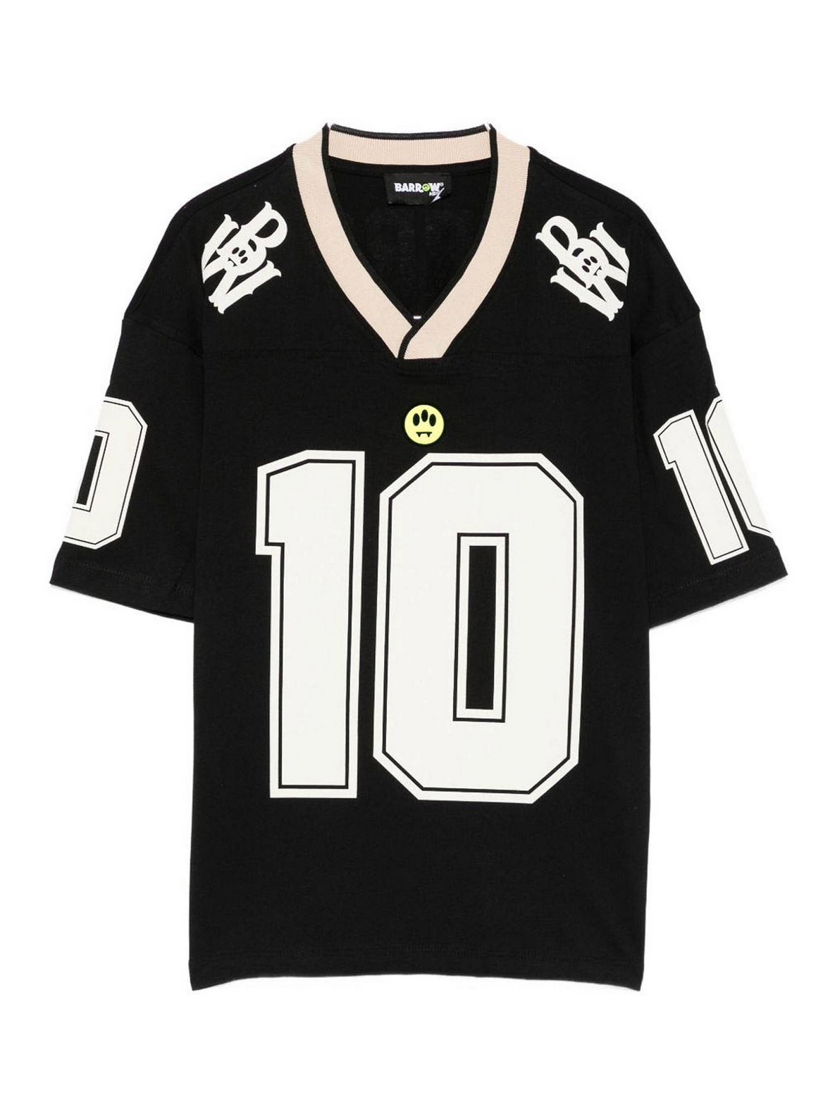 T-shirt à col en V avec col en V noir, manches courtes, logo imprimé et chiffres