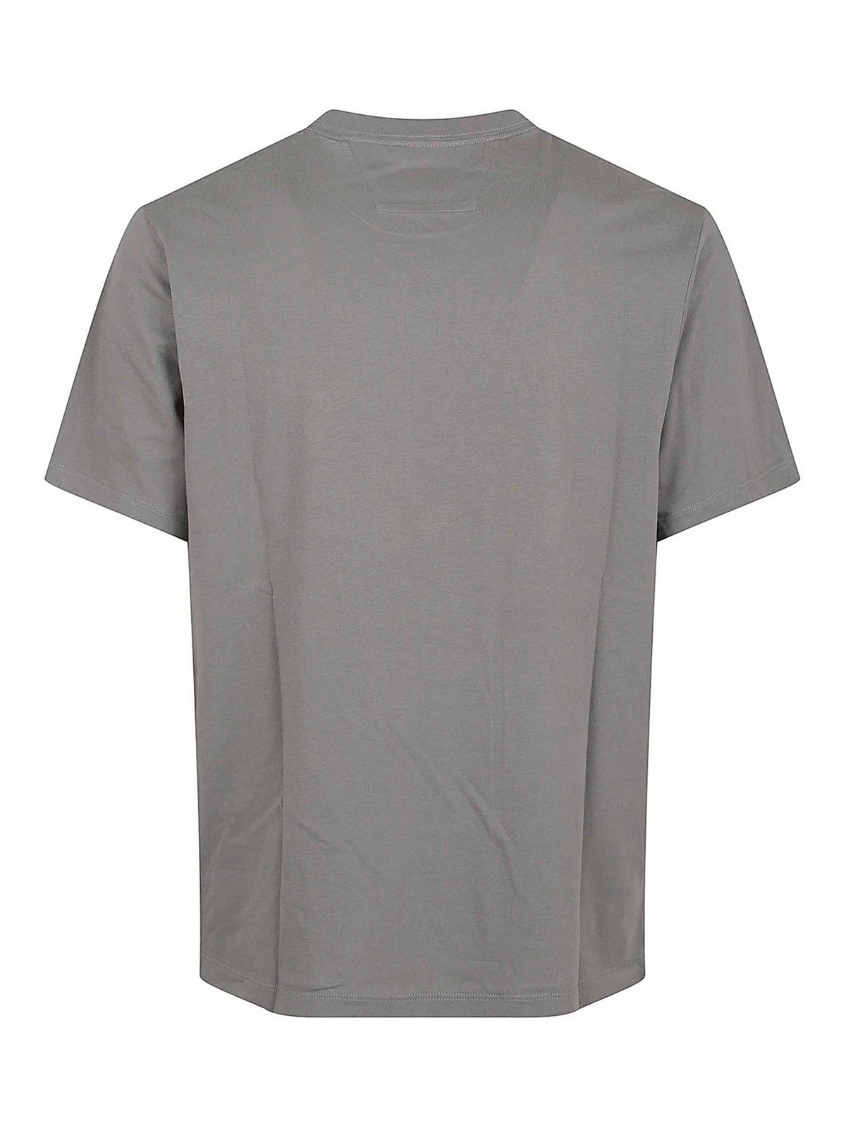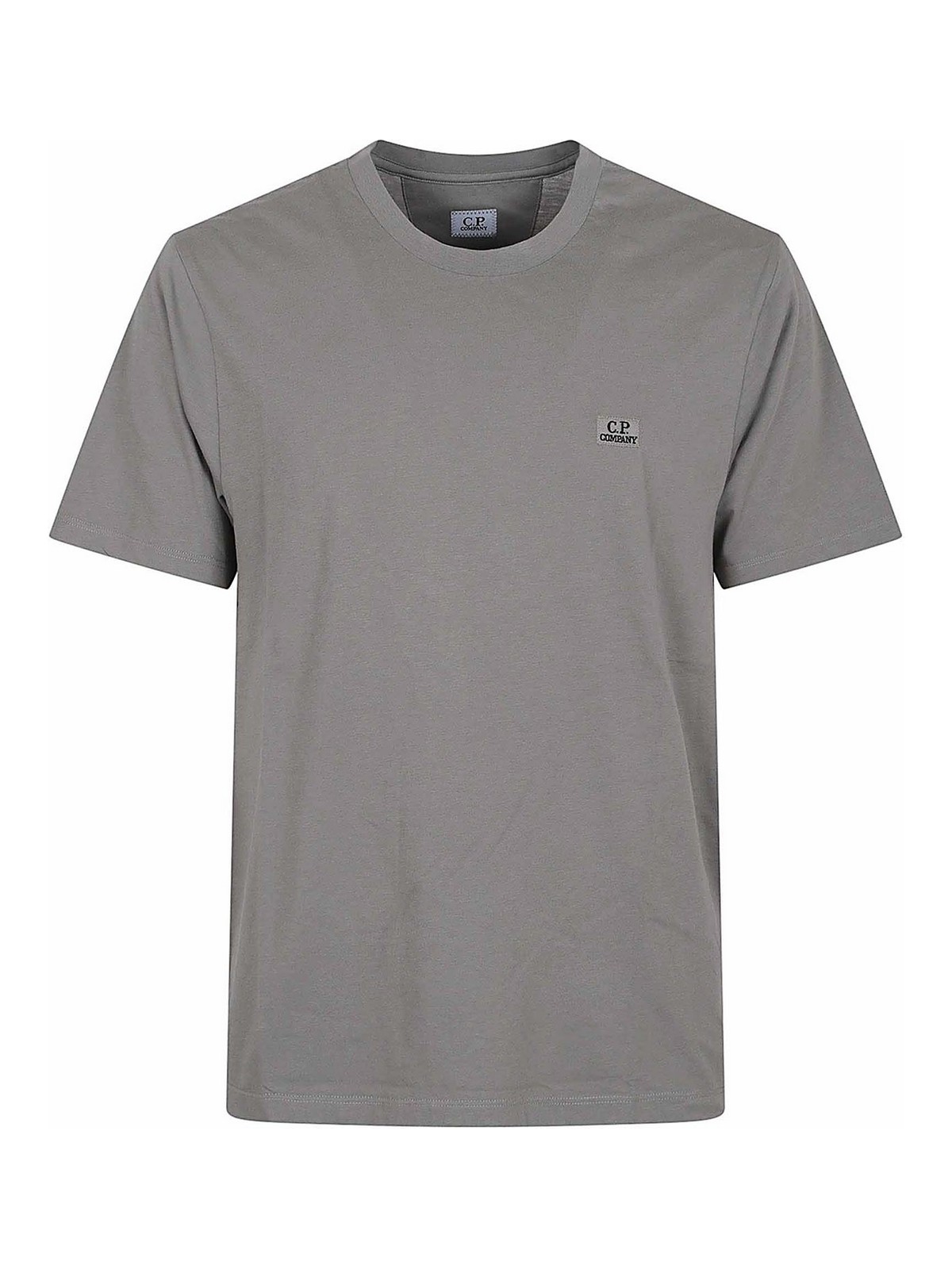 T-shirt en jersey de coton de la marque CP Company, col rond, manches courtes, coupe classique. Doté d'un écusson à logo brodé sur la poitrine.