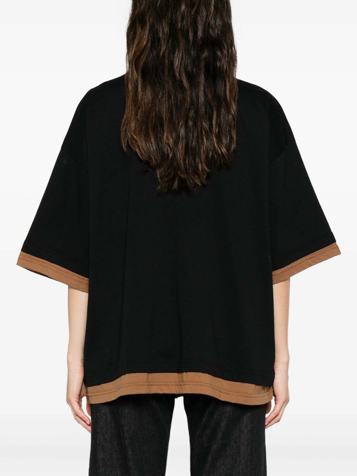 Bordure noire à imprimé animalier, col rond, manches courtes, ourlet droit