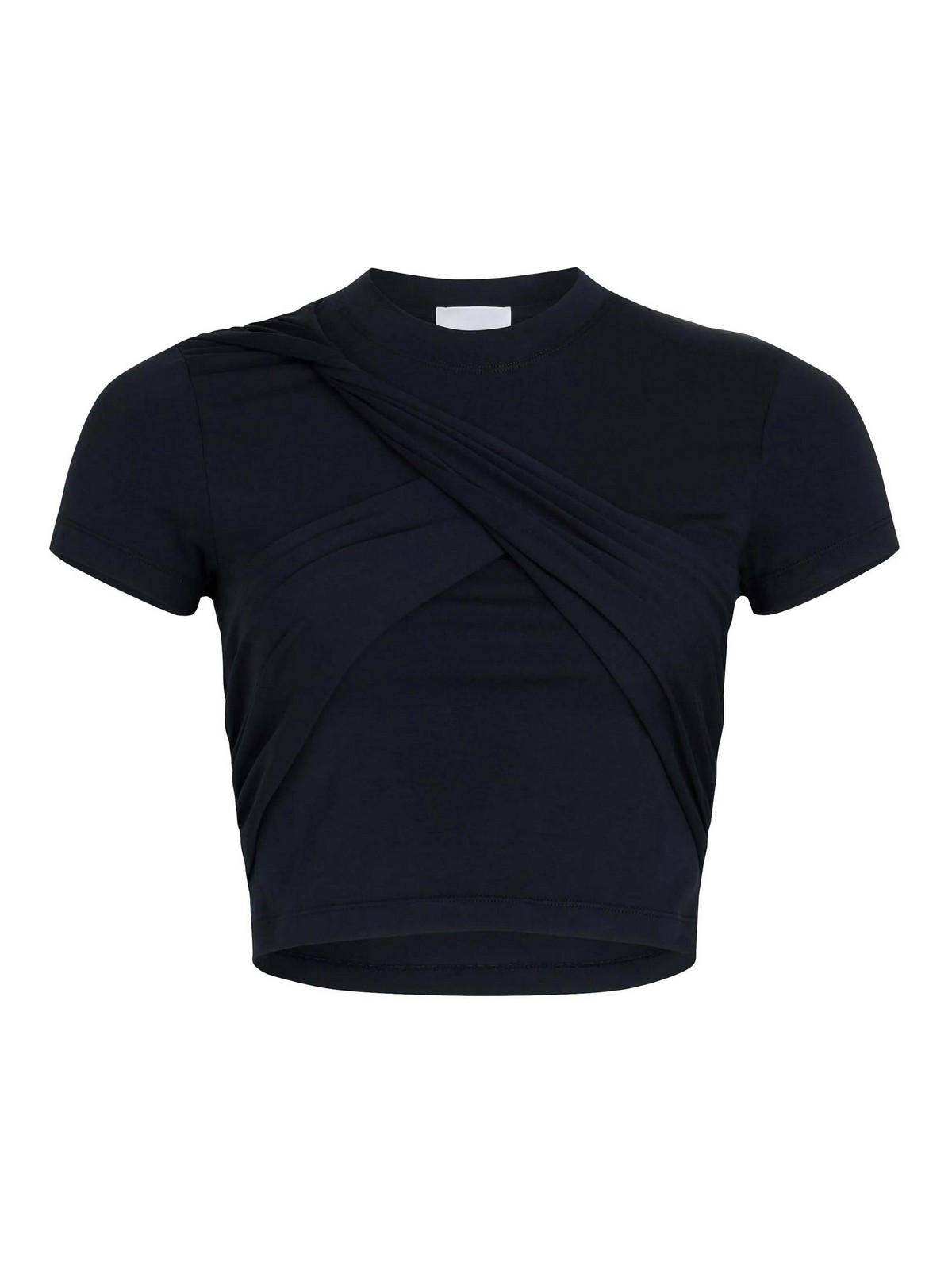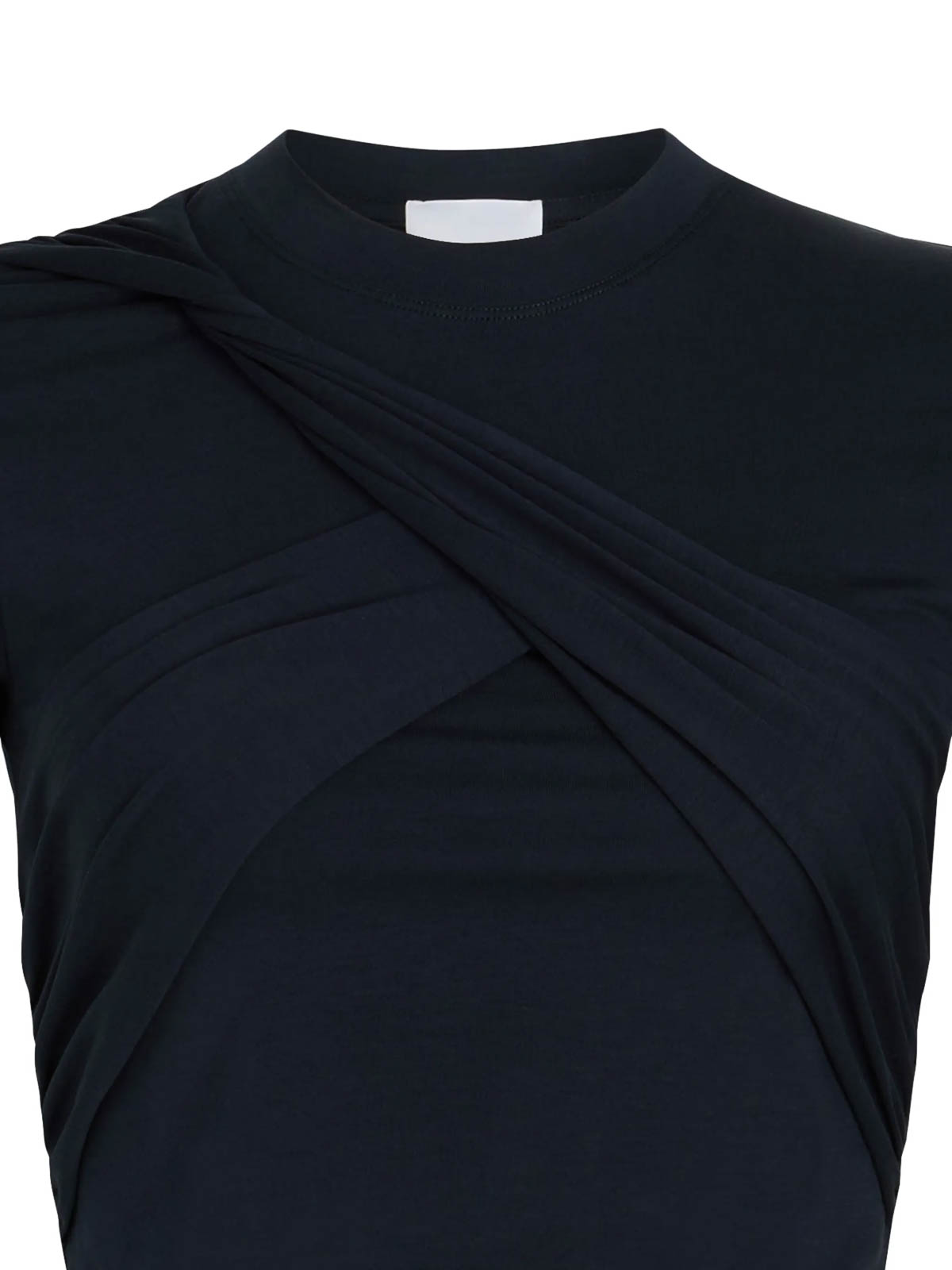 Col rond, manches courtes, ourlet droit, bleu nuit