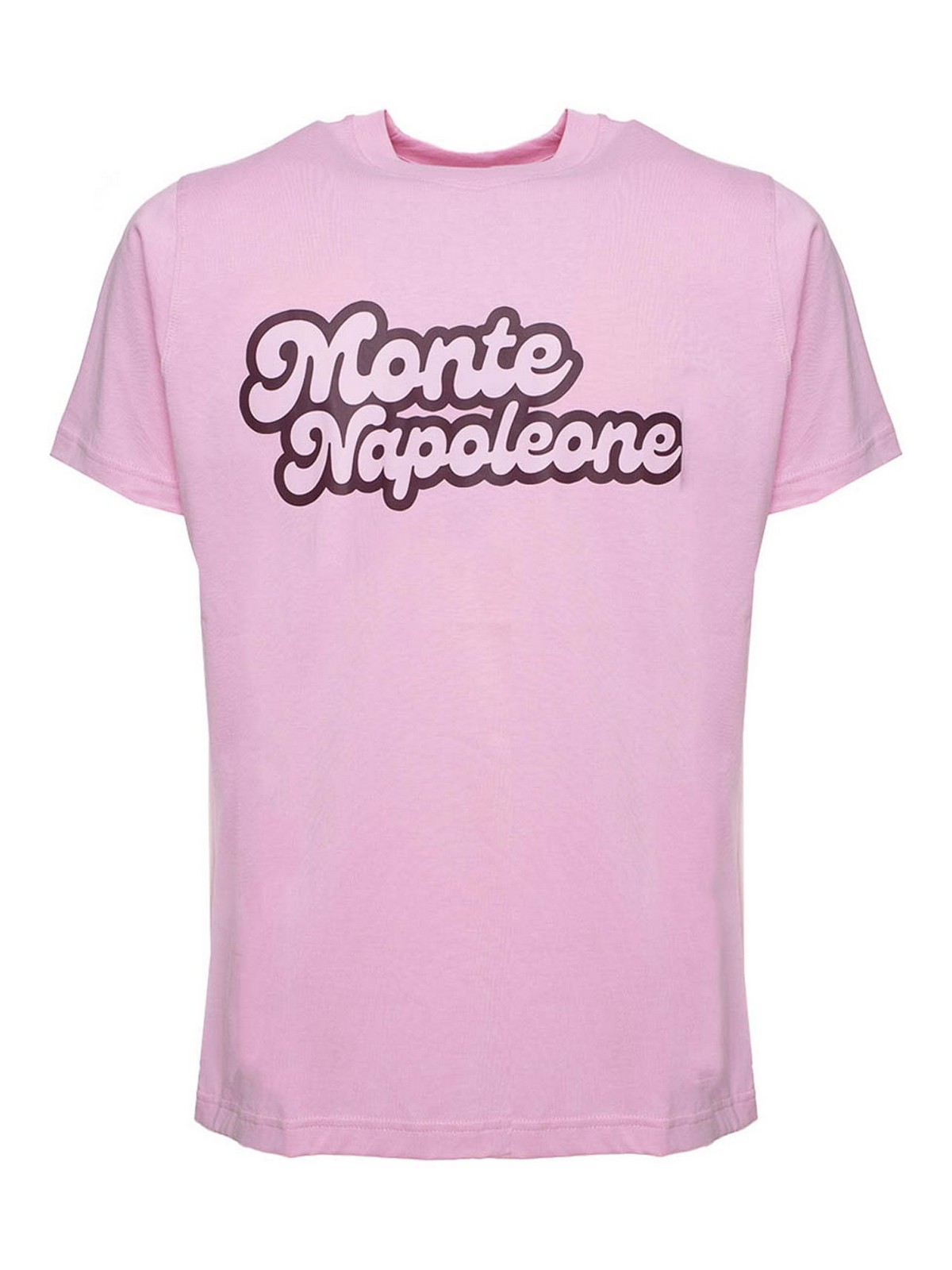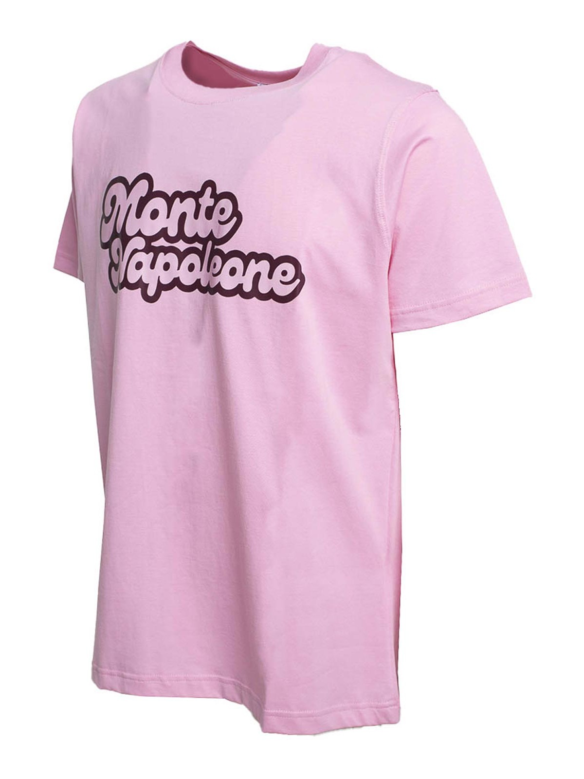 T-shirt Montenapoleone en rose, t-shirt ras du cou froissé avec impression sur le devant, col « Montenapoleone », col et étiquette latérale avec logo rose côtier