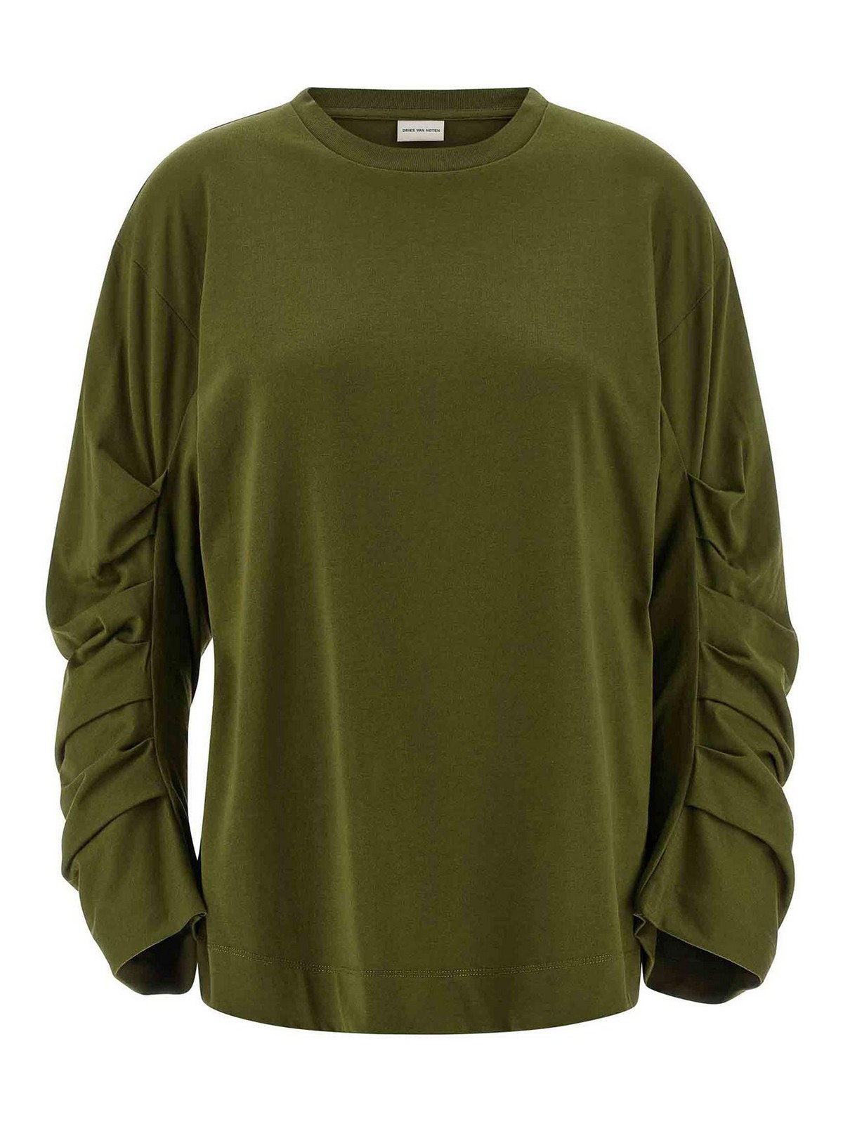 t-shirt à col rond en jersey de coton Heynas avec manches longues plissées et épaules tombantes.
