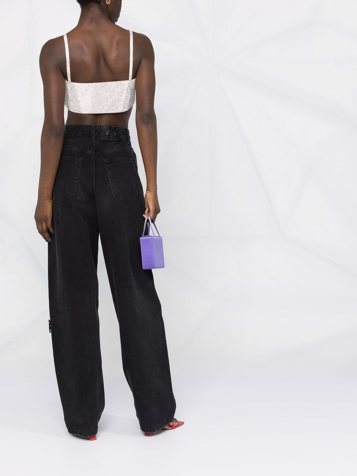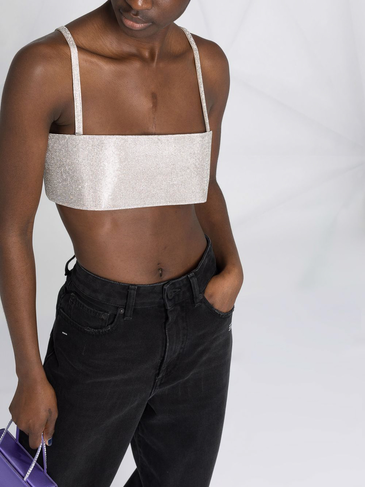 Bretelles spaghetti ornées de cristaux de soie argentés, col carré