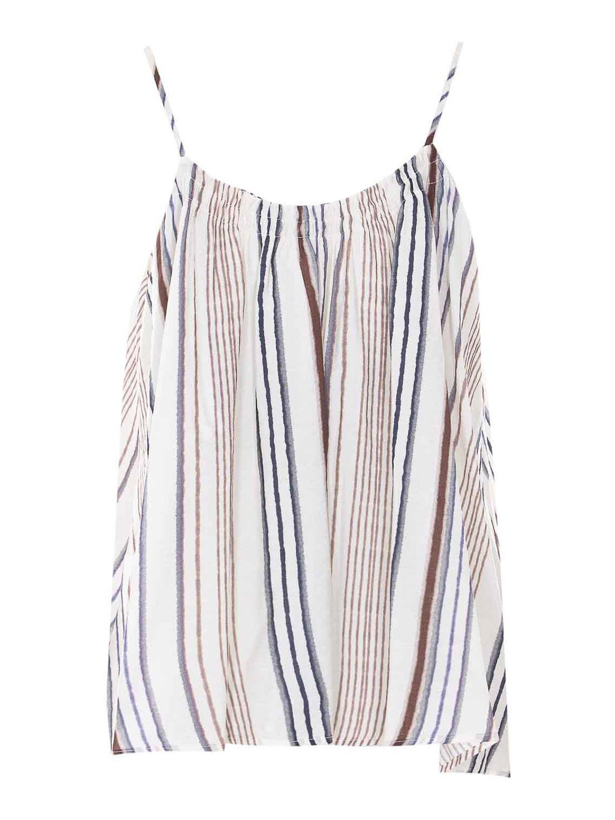 Débardeur beige Eleh, bretelles spaghetti, col rond, rayé, effet large
