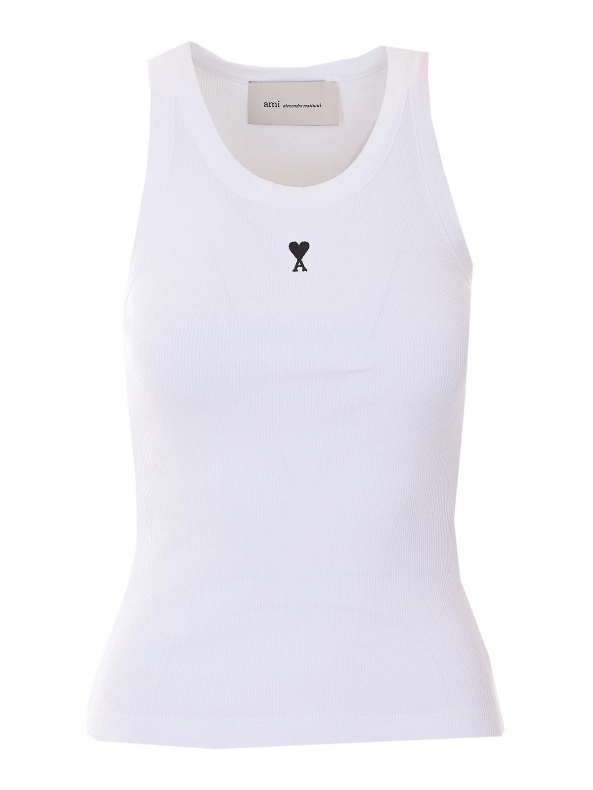 Débardeur blanc Ami - Alexandre Mattiussi, logo Ami de cœur brodé sur le devant, sans manches