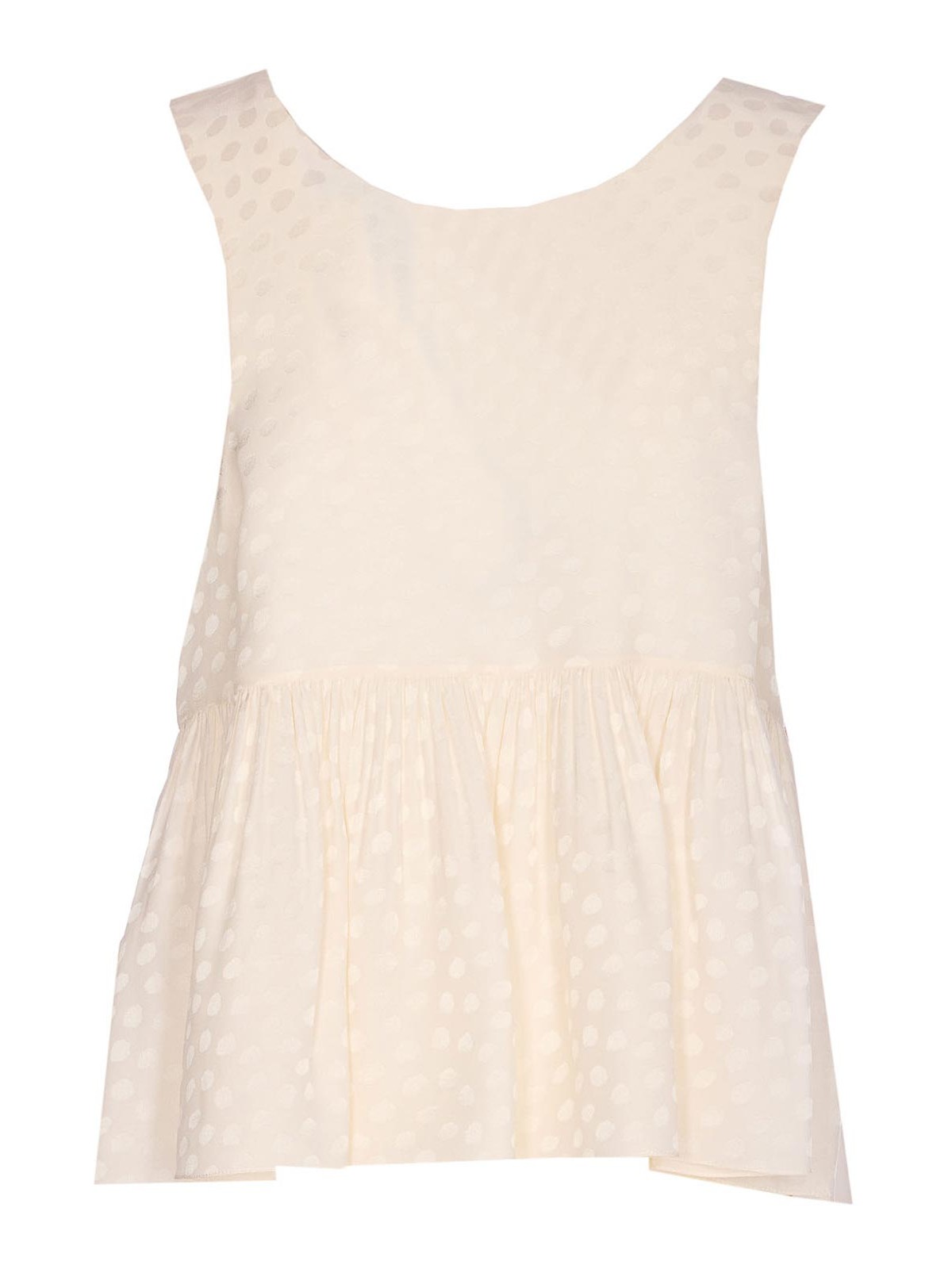 Top blanc Chlo, sans manches, à pois, encolure ronde