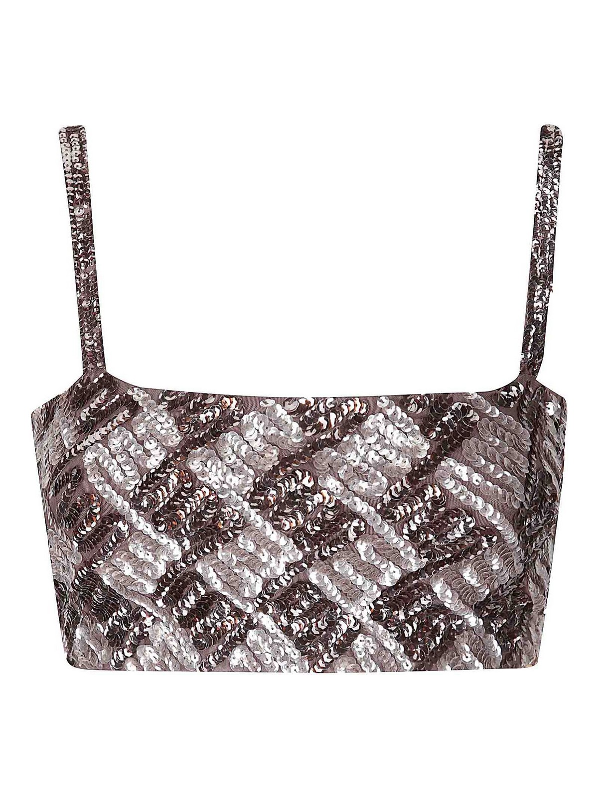 Micro top avec paillettes décoratives, petites bretelles, tissu élastique.
