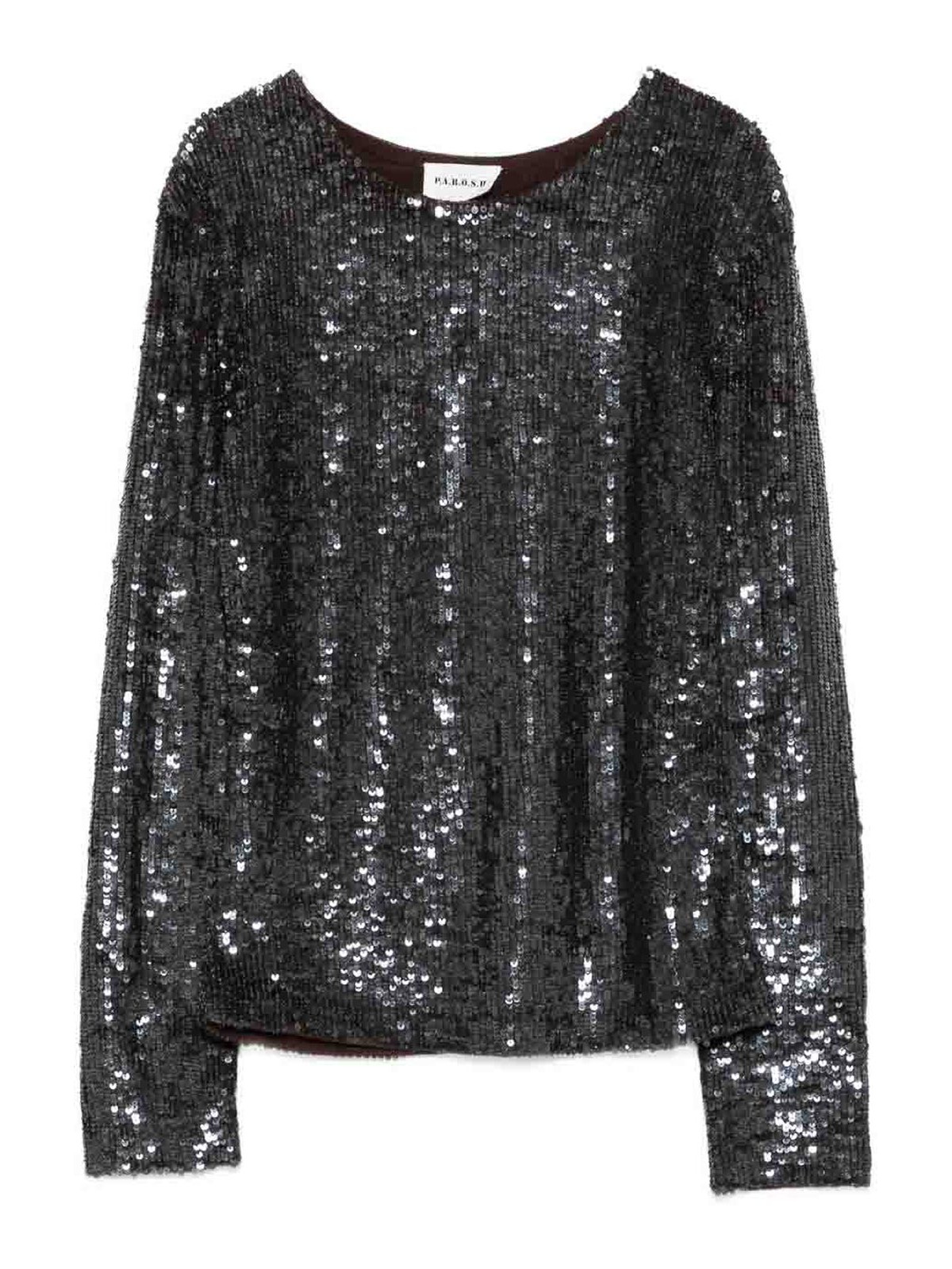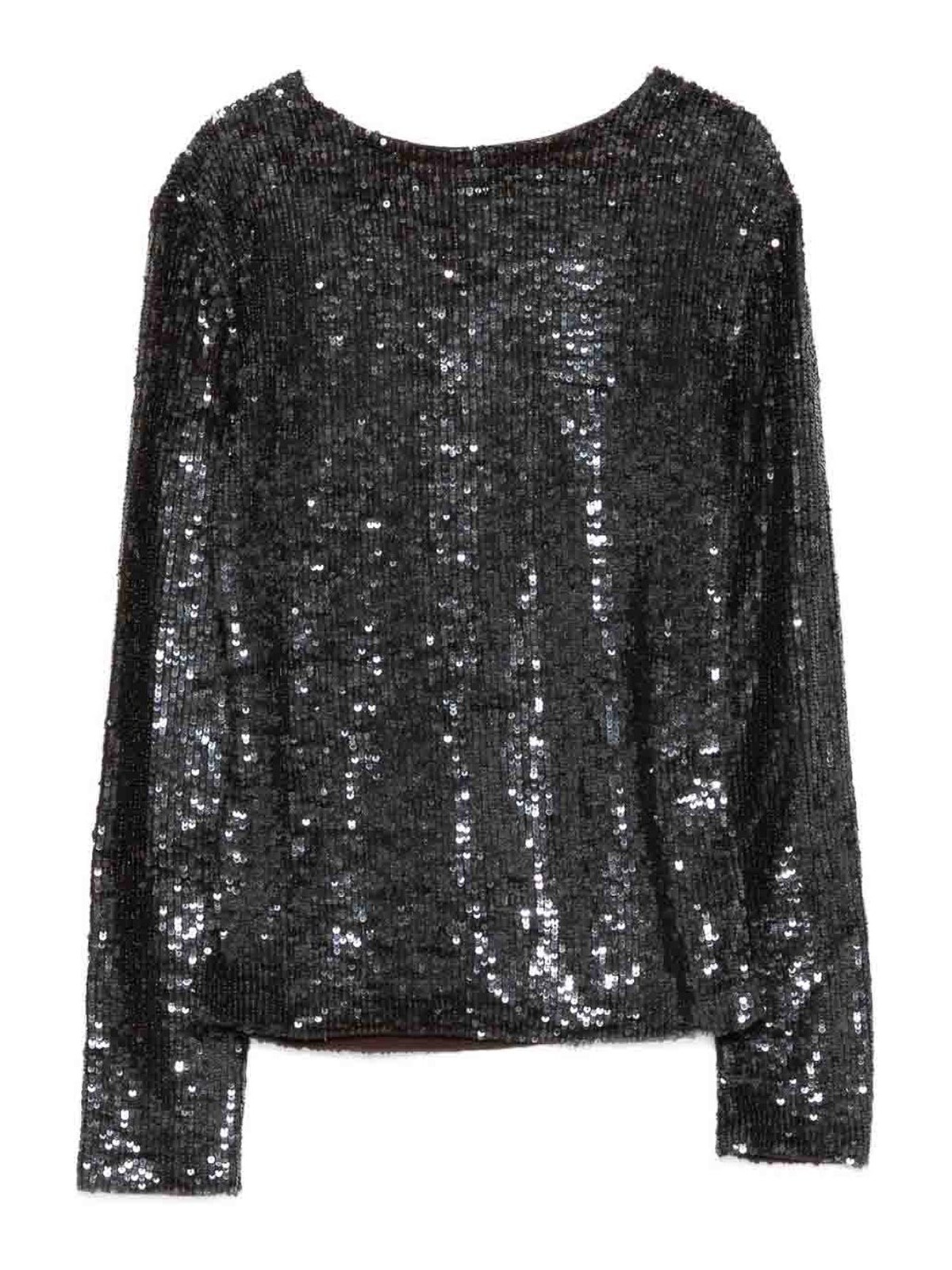 Manches longues à paillettes argentées, col rond et ourlet droit