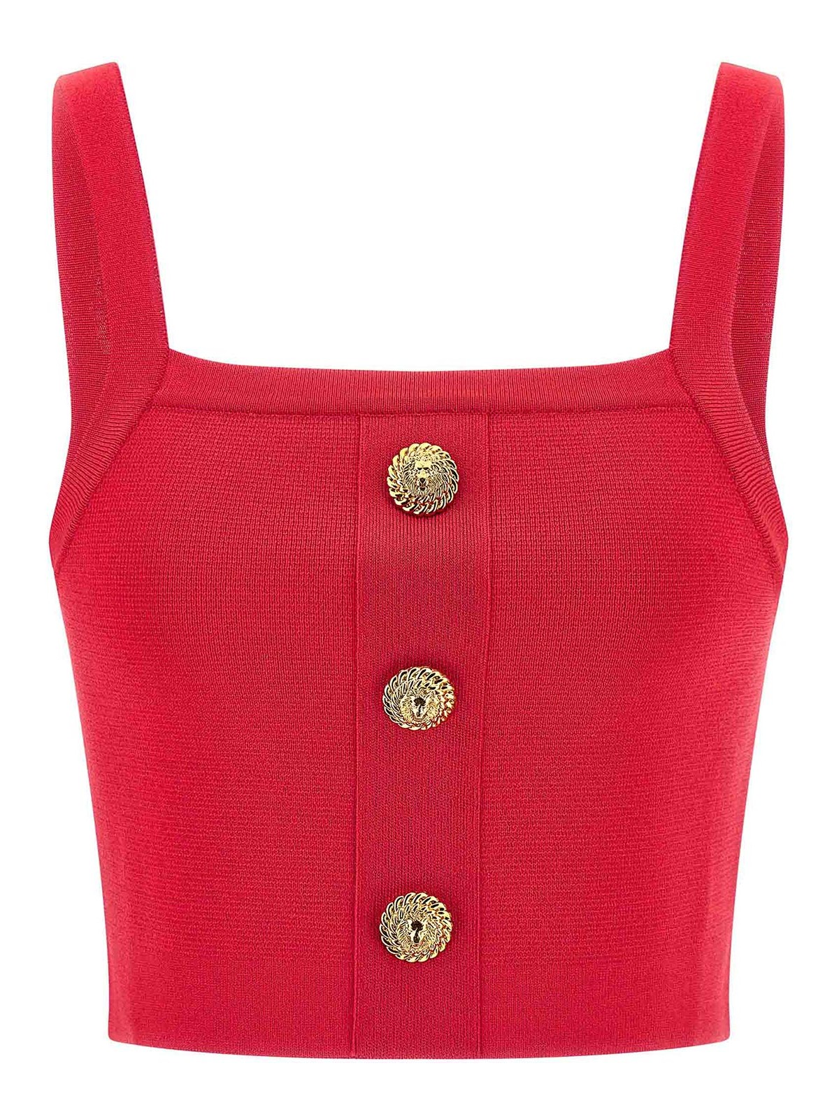 Top en maille de viscose à effet brillant avec 3 boutons courts « testa di leone » sur le devant et fines bretelles.