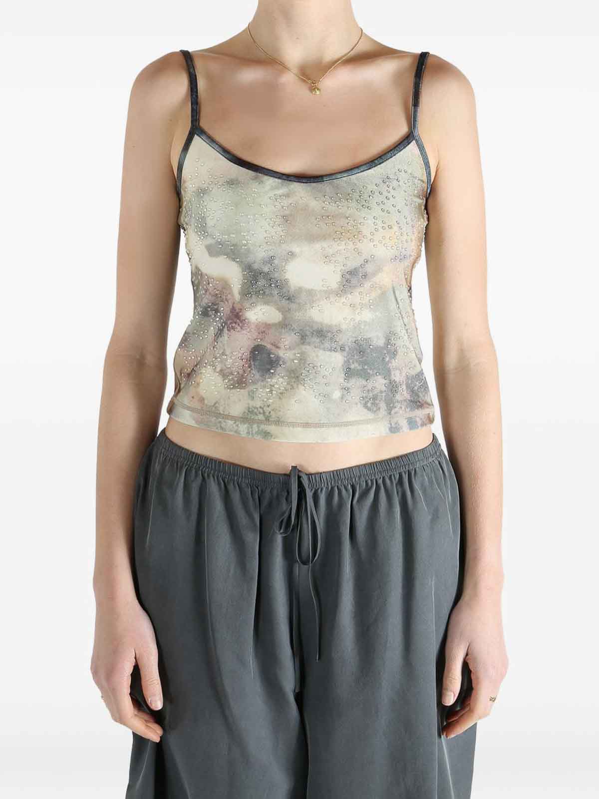 Haut à imprimé intégral et à fines bretelles signé Diesel, orné de subtils ornements qui renforcent son attrait stylé. La coupe ajustée met en valeur la silhouette, ce qui en fait la pièce idéale pour les tenues décontractées chics ou les looks estivaux contemporains. Une pièce polyvalente qui allie dynamisme ludique et sophistication moderne