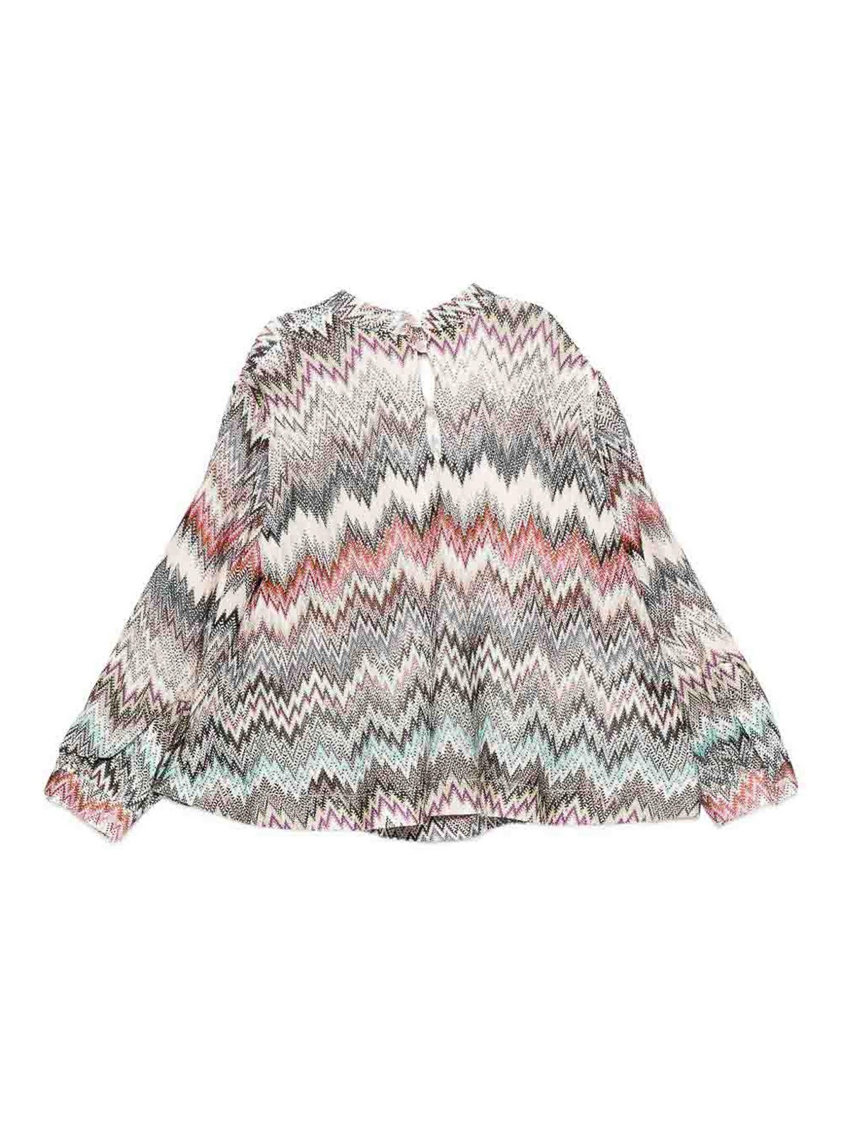 Le haut à motif en zigzag présente un motif en zigzag multicolore, manches longues, encolure ronde avec boutons dans le dos, l'article peut différer légèrement de l'image, car les produits Missoni sont fabriqués à la main.