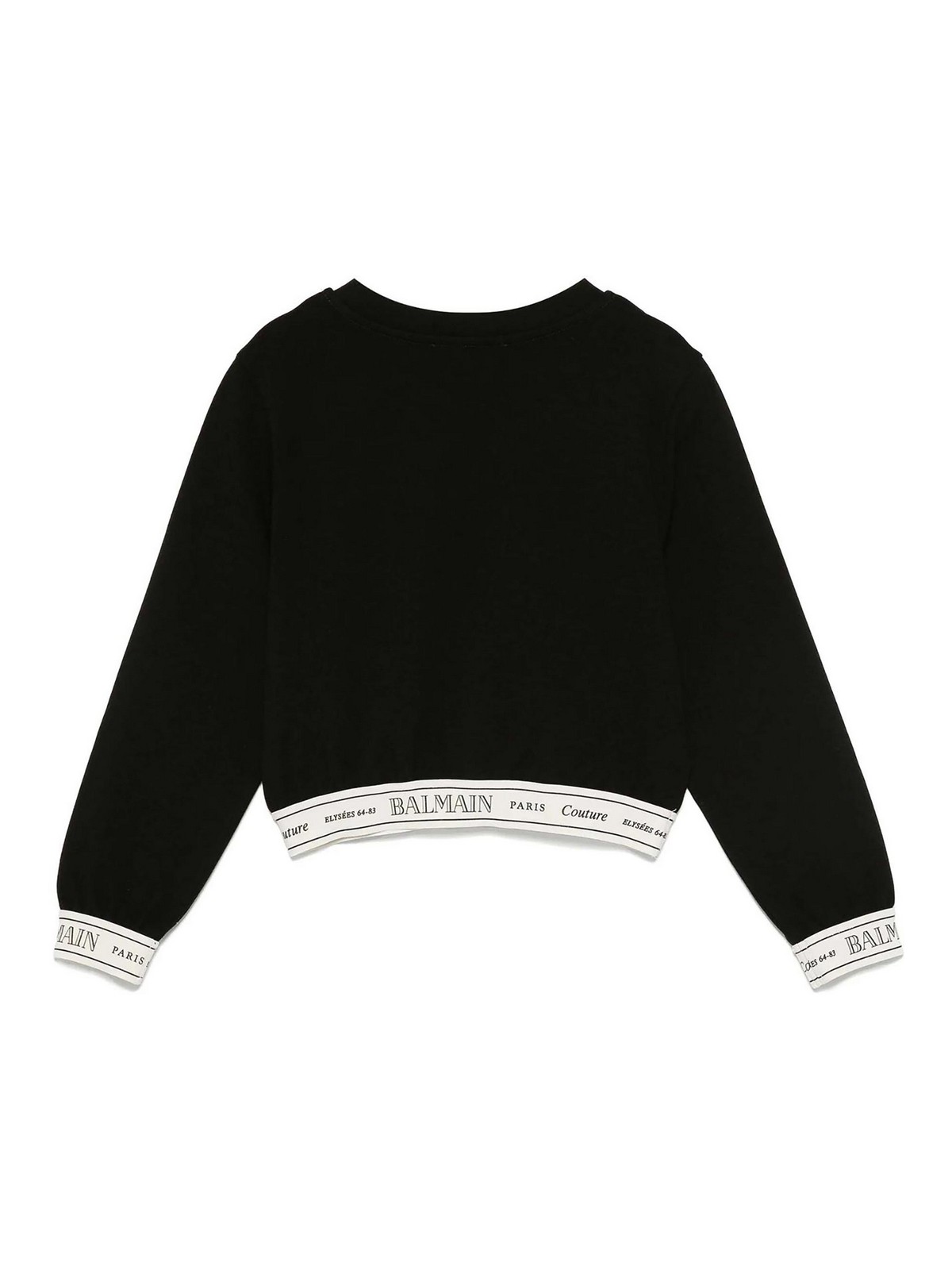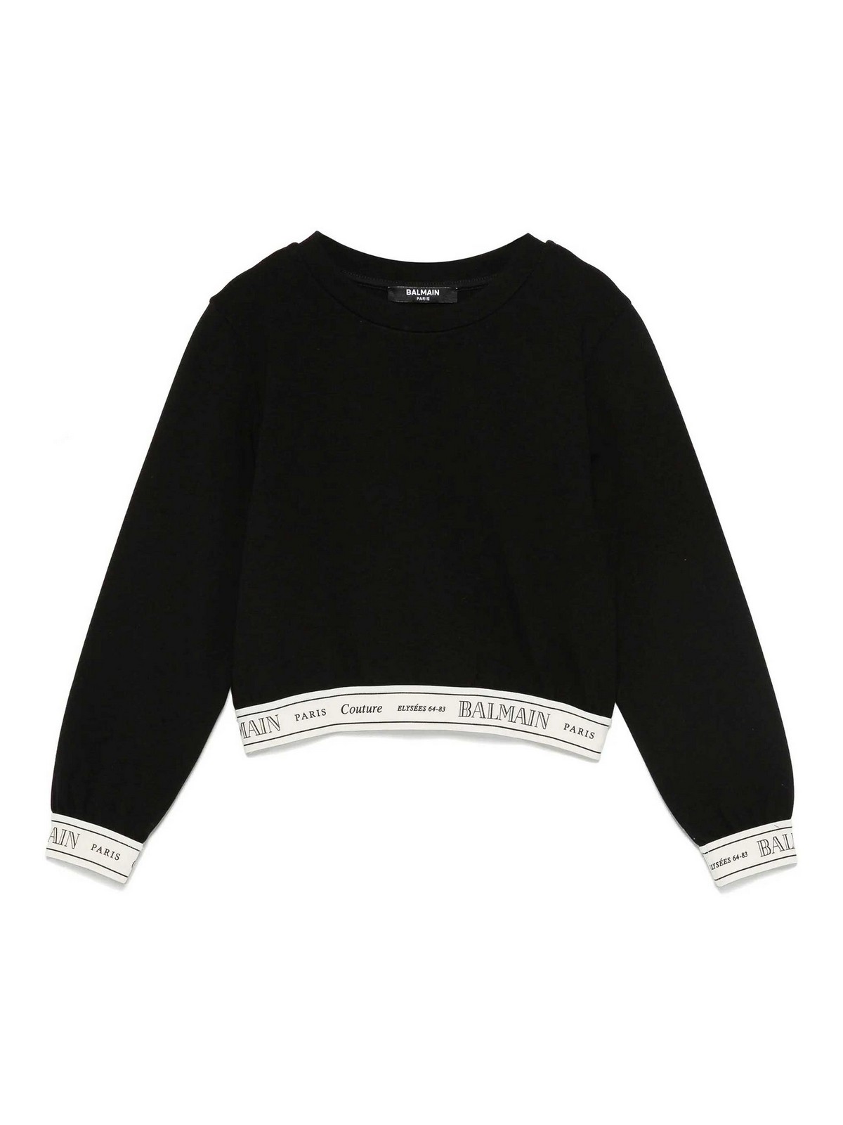 Poignets côtelés noirs, ourlet logoté, col rond, manches longues