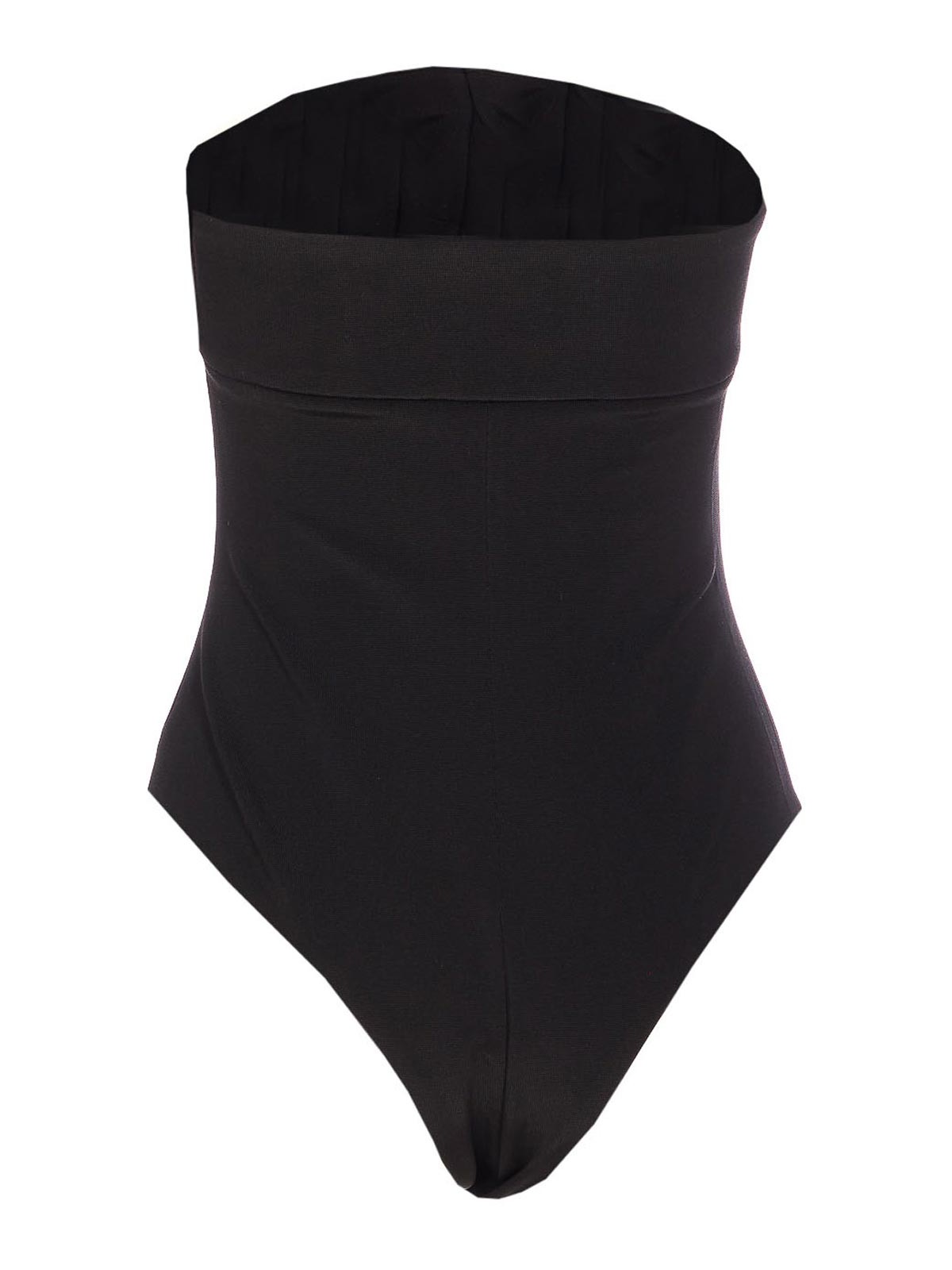 Haut bustier ceinturé noir Balmain, fermeture zippée latérale sur le côté, fermeture boutonnée, encolure bateau, épaules dénudées