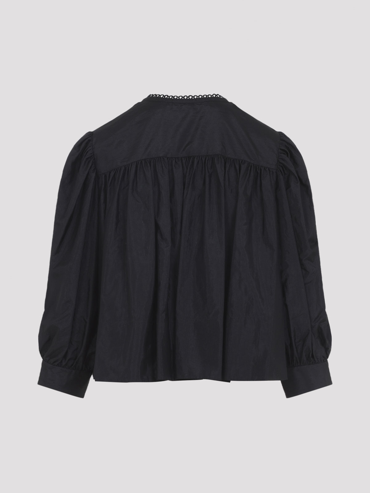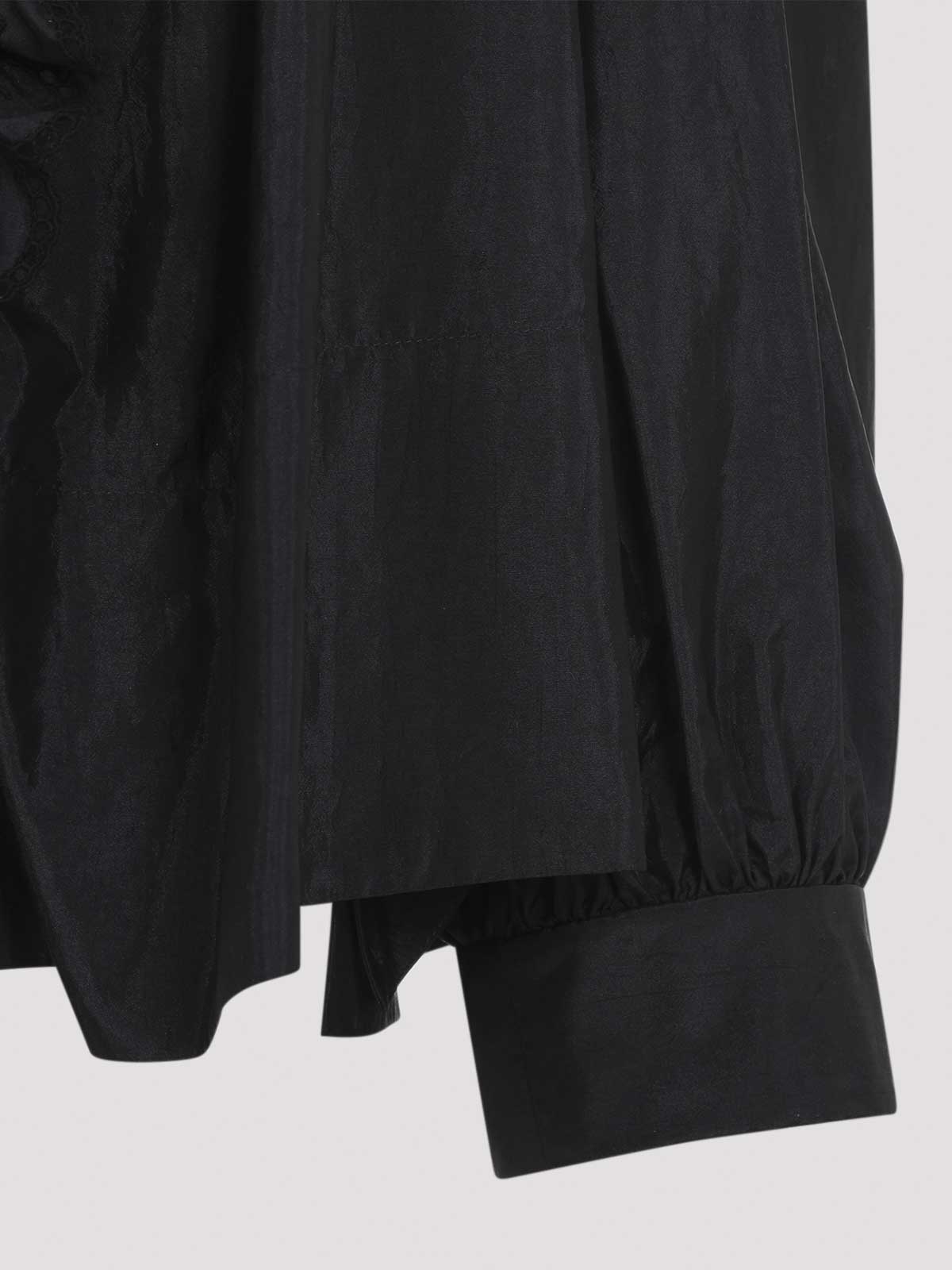Haut noir Chloé en polyamide et soie mélangée. col rond avec détails brodés ton sur ton, fermeture demi-boutonnée sur le devant, détail volanté sur le devant, manches longues, poignets boutonnés, ourlet droit.