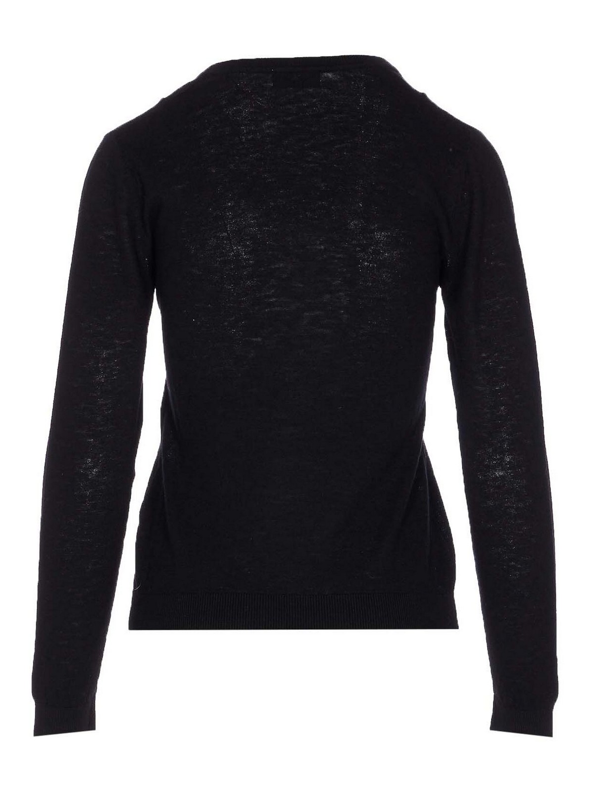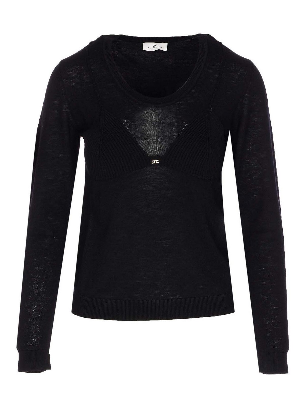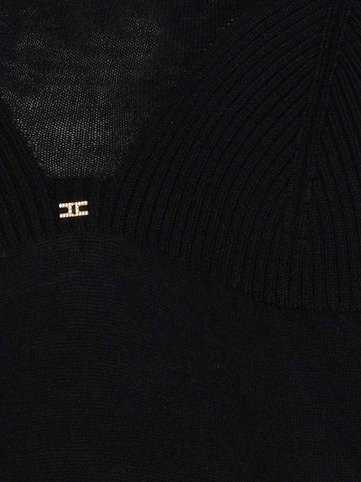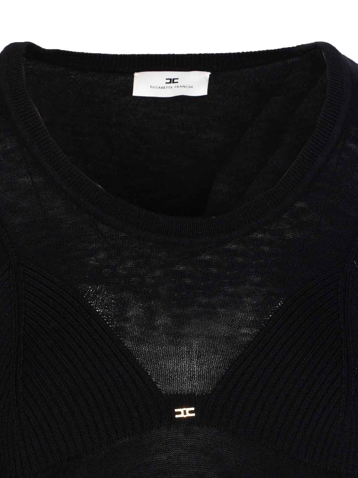 Top à manches longues noir Elisabetta Franchi, col rond, manches longues, mini-plaque, logo sur le nom de la