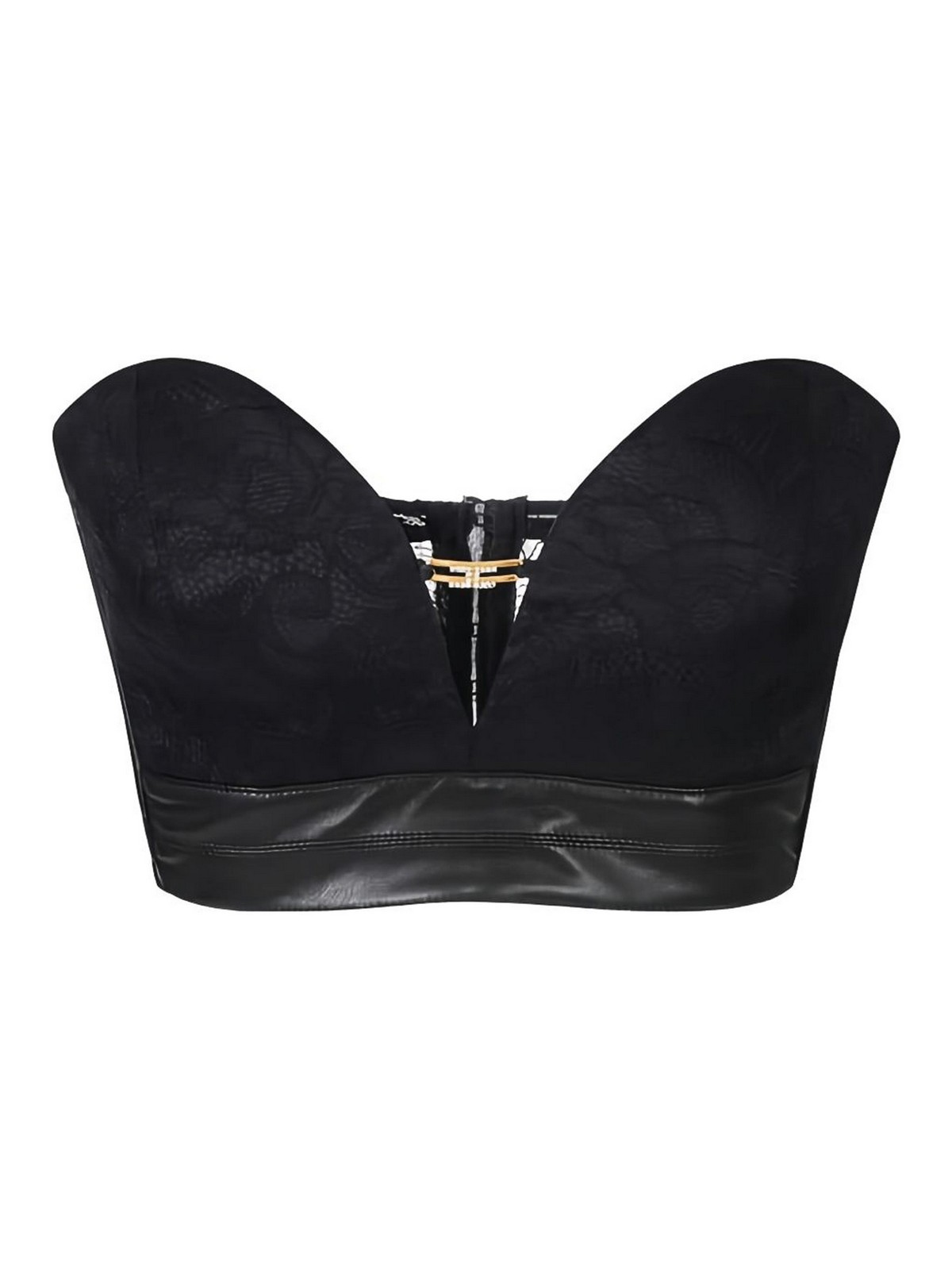 Haut bustier en dentelle florale noire d'Elisabetta Franchi avec un logo en forme de bijou, une pièce sensuelle et élégante qui allie féminité raffinée et style emblématique de la marque, parfaite pour les soirées et les occasions spéciales