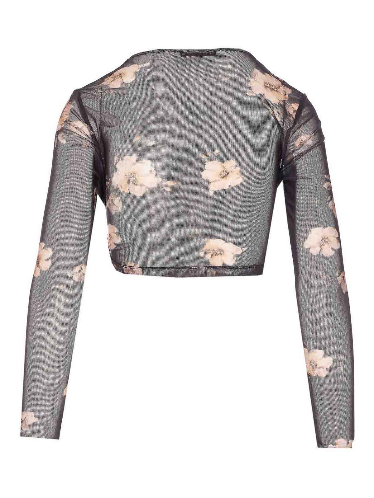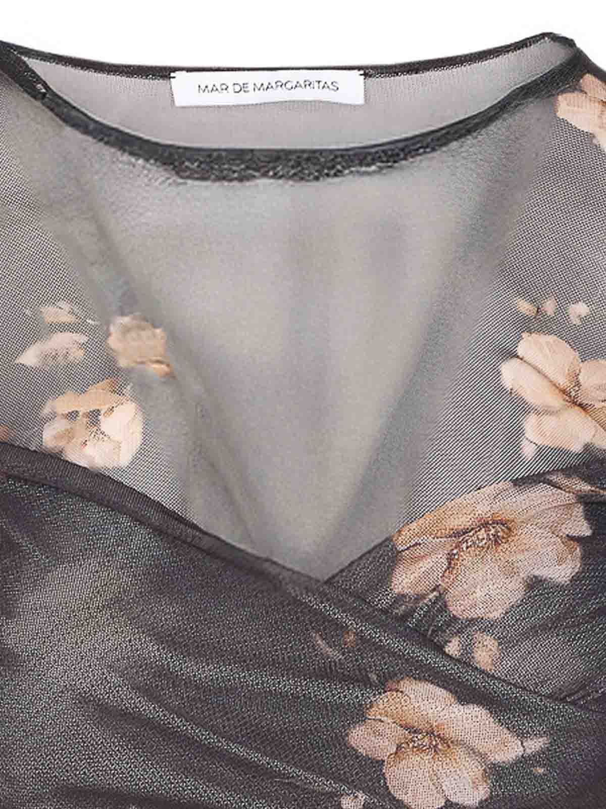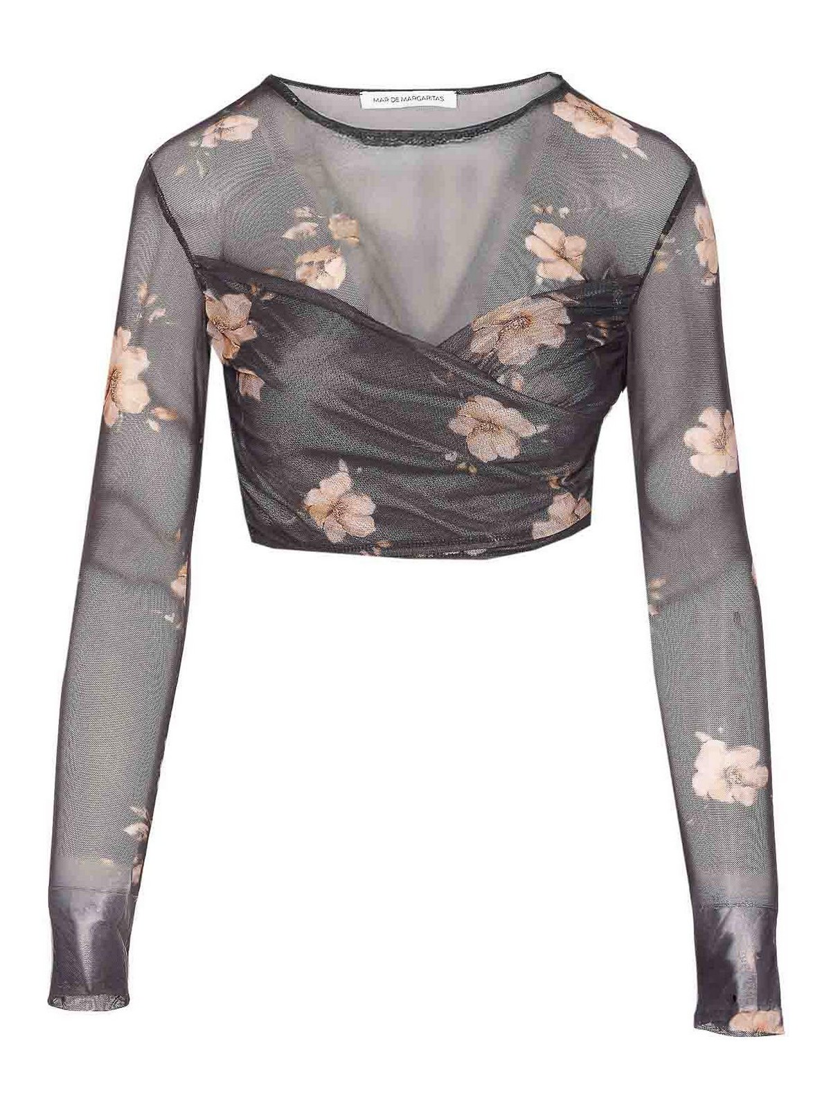 Top noir à manches longues Mar de Margaritas, col rond, modèle court à motifs, nom du