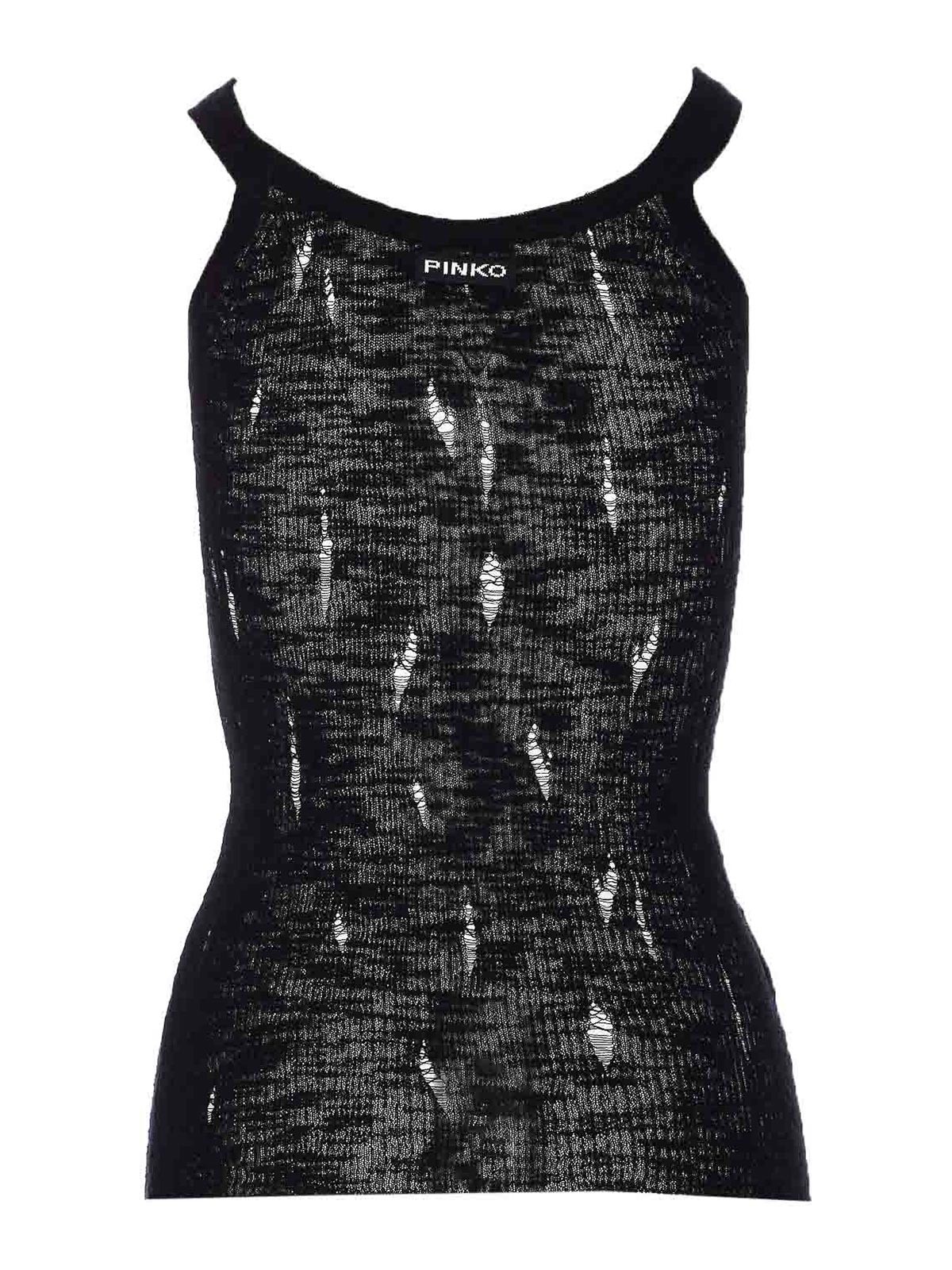 Débardeur Sergio noir à col rond et sans manches, logo en relief au dos