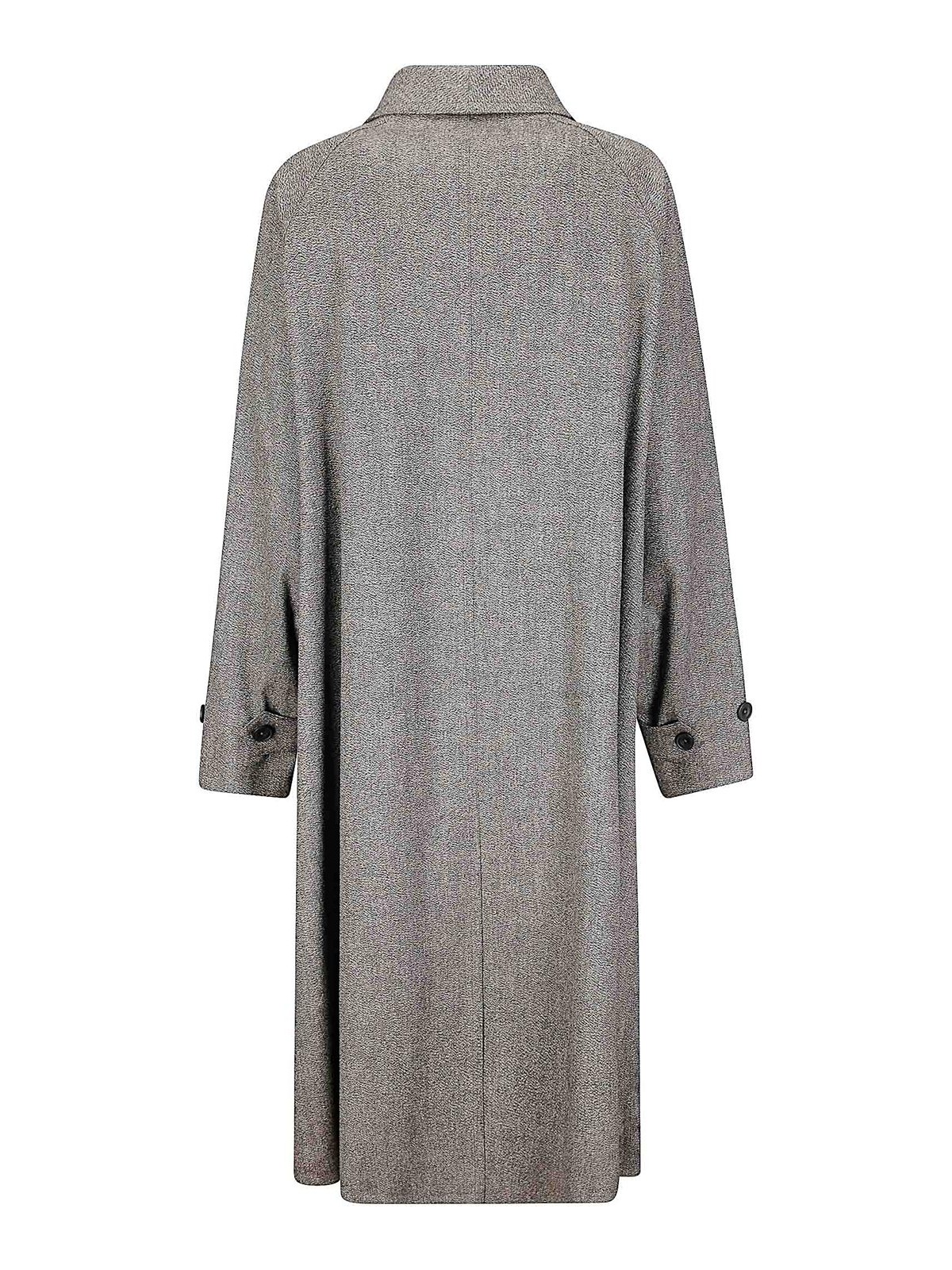 Manteau avec fermeture boutonnée cachée sur le devant, deux poches avant à rabat, fente arrière, coupe ample.