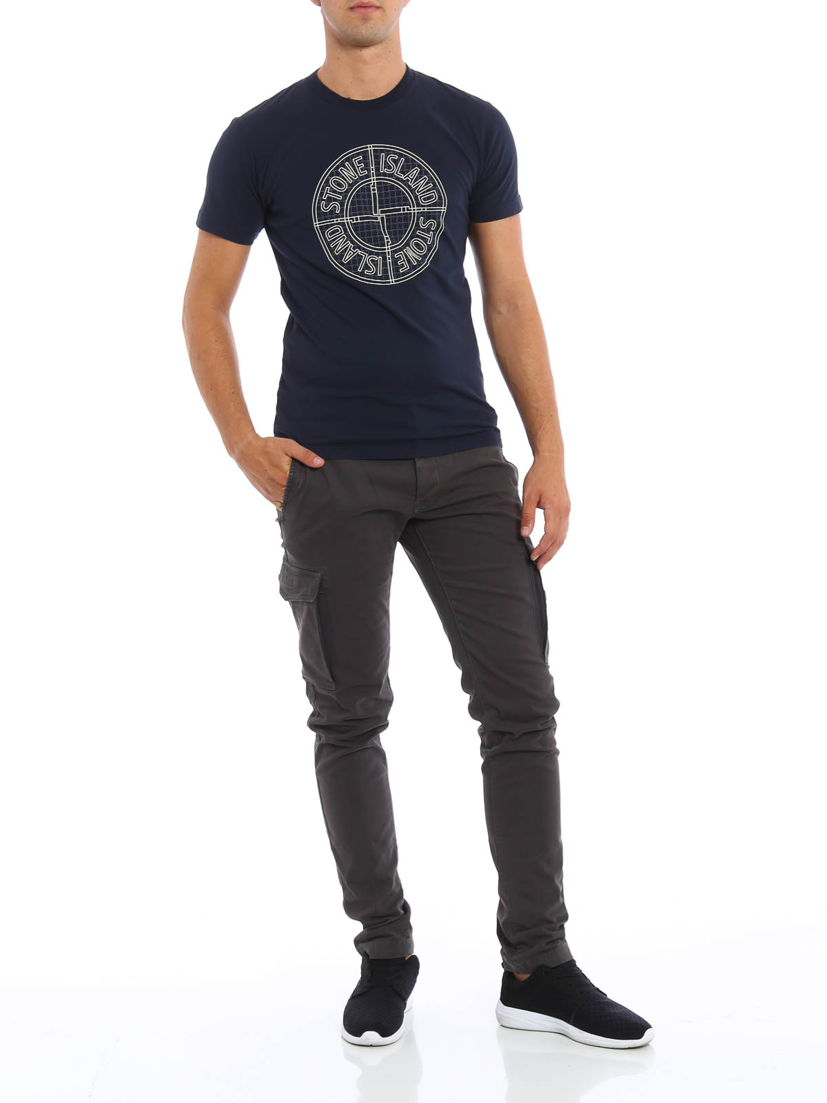 STONE ISLAND: T-shirts - T-Shirt Bleu Foncé Pour Homme