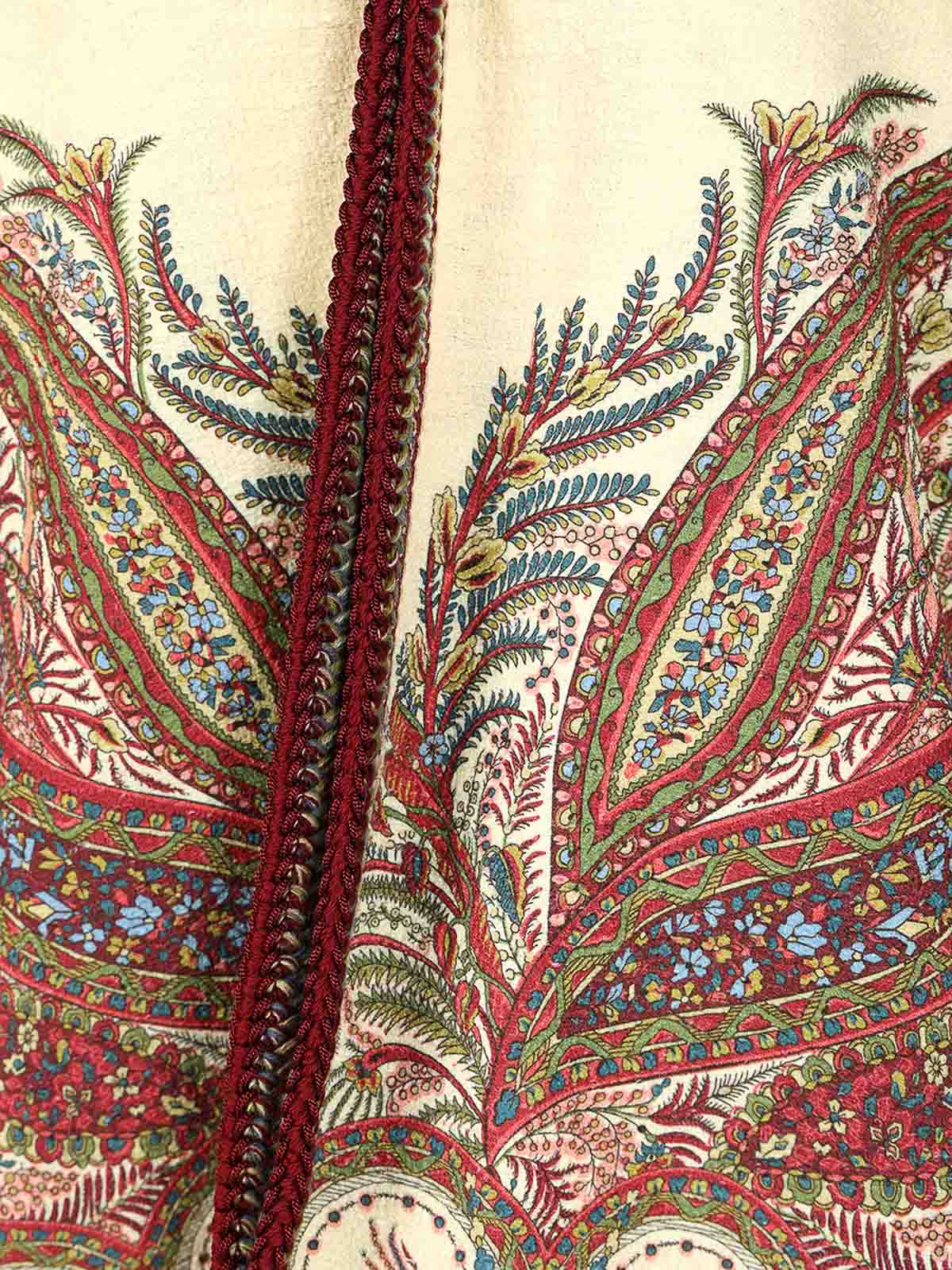 Kesa court en tissu bouclé à motif floral cachemire de la marque Metro, avec bordures à motifs tissés contrastants et manches kimono